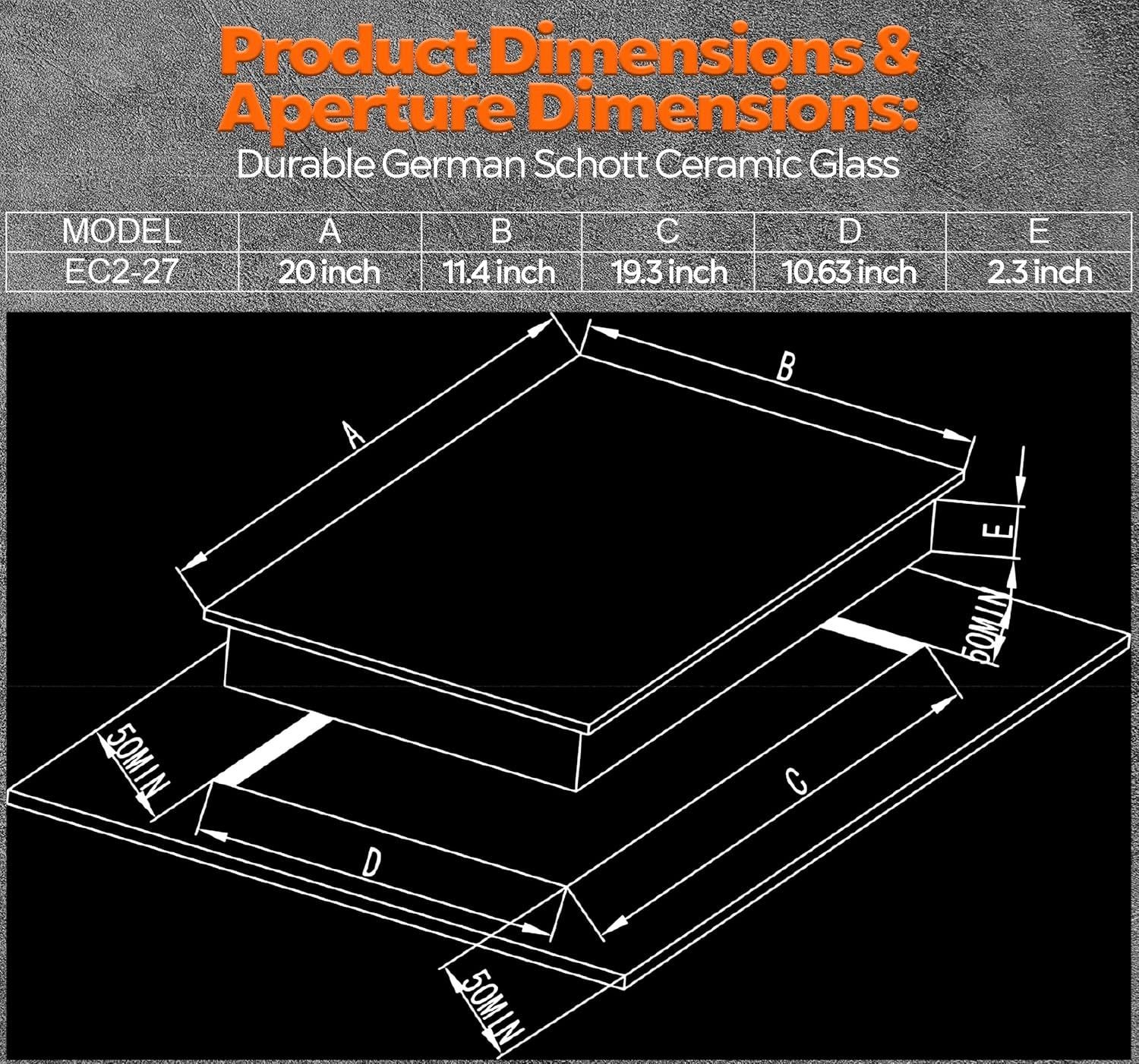 110V, Ramblewood 2 Burner Electric Cooktop, EC2-27, UL rated German EGO burner.
