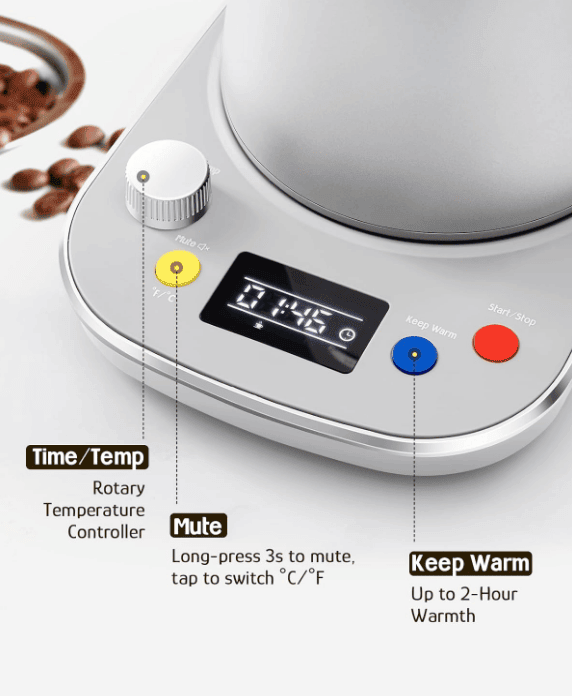 [Accurate Temperature Control] -Use a rotary knob to optimize your brew to accurately adjust the ± 1° temperature. Unlock the unique tea and coffee aroma in the 100-212°F range. Easy switch between °F and °C to satisfy global user preferences.