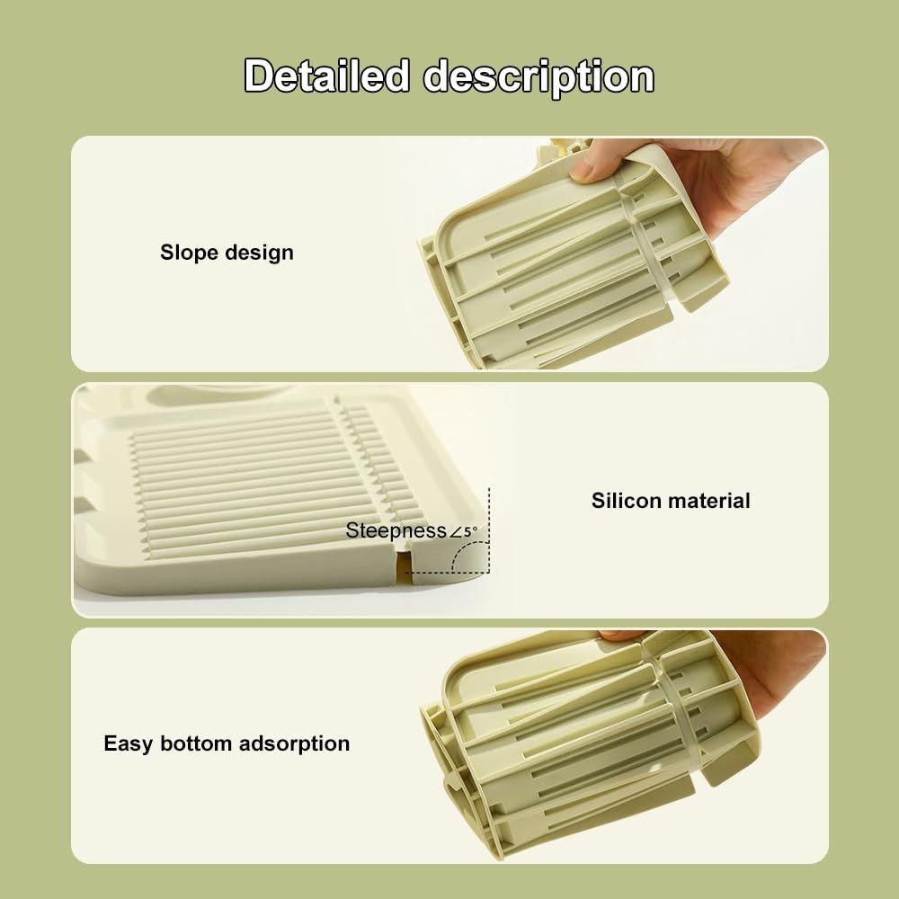 4.Versatile Usage for Multiple Spaces: Crafted from 100% food-grade silicone, this mat is built for heavy-duty use. Its universal design can be trimmed to fit most standard faucets and is suitable for kitchens, bathtubs, laundry areas, bars, and beyond.