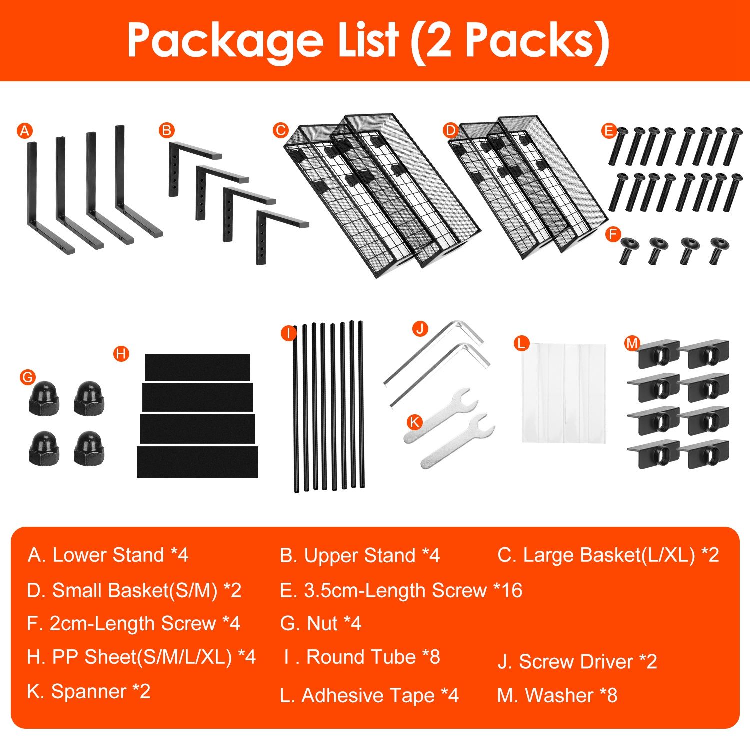 *Easy Installation*:Come with all assembly parts,screws,nuts and tools including hex key and spanner,it's easy to assemble the 2-tier storage shelf within a few minutes. Besides,mesh design and smooth surface make it easy to wipe clean and prevent water collection and mold effectively.