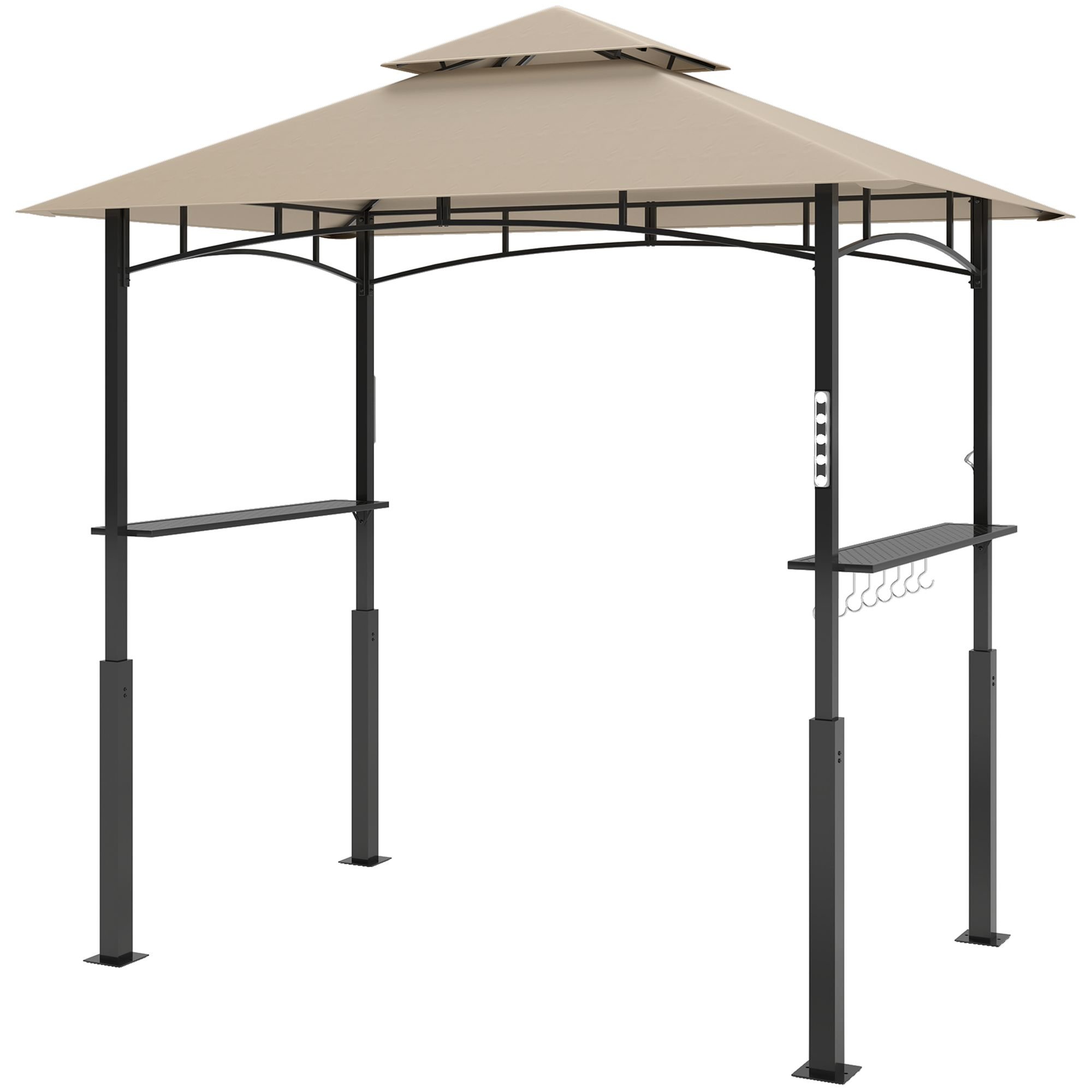 Transform your grilling experience with the Outsunny Grill Gazebo! Its double-top design enhances air circulation and reduces smoke build-up. The PA-coated, flame-retardant canopy offers UV protection and splash resistance, ensuring a secure backyard barbecue. Features include handy shelves, hooks for your grilling essentials, and a built-in bottle opener for convenience. Suitable for any barbecue enthusiast.