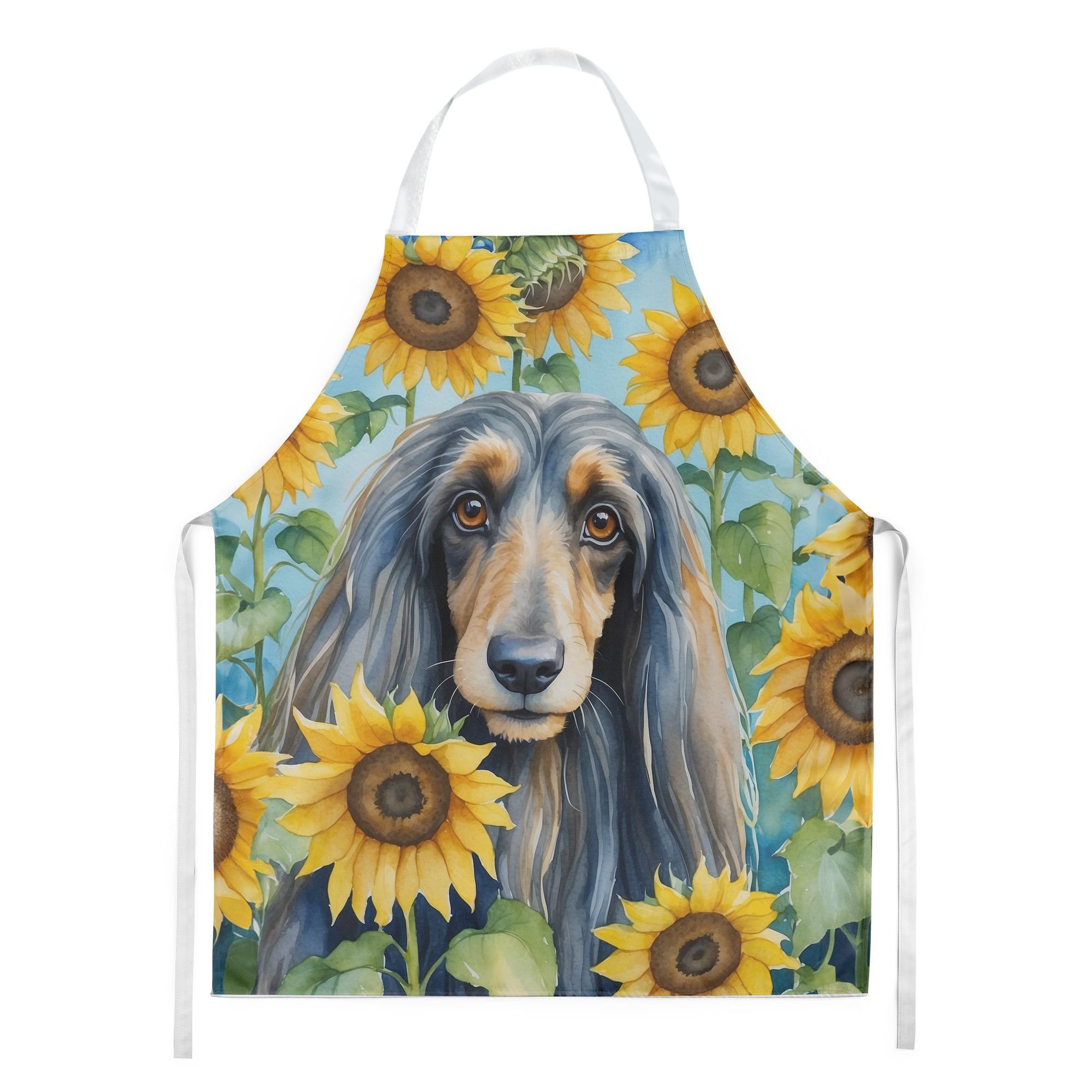 Afghan Hound in Sunflowers Apron Cooking Kitchen Server Baking Crafts Gardening for Adult Women Men, Unisex, Large, Multicolor