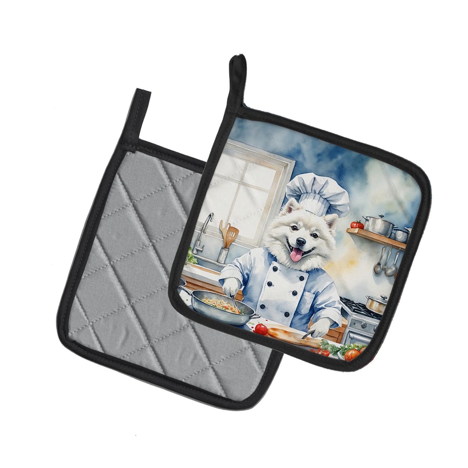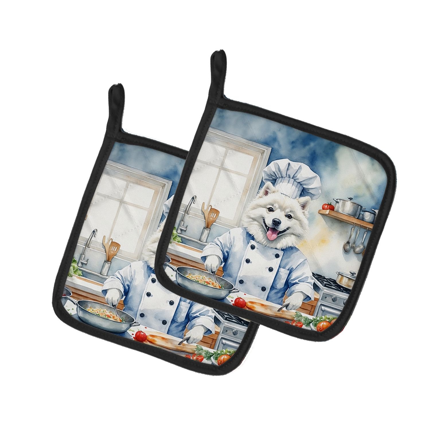 American Eskimo The Chef Pair of Pot Holders Kitchen Heat Resistant Pot Holders Sets Oven Hot Pads for Cooking Baking BBQ, 7 1/2 x 7 1/2