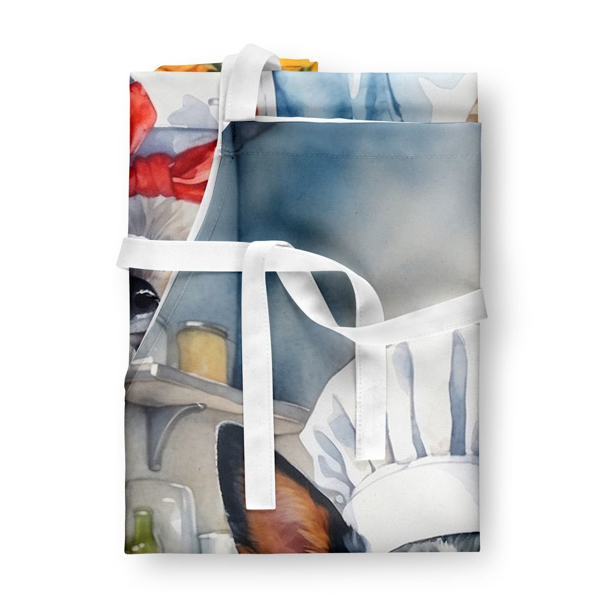 Apron featuring breed specific Australian Cattle Dog artwork. Elevate your cooking, baking, and grilling experiences with our versatile Kitchen or BBQ Apron. This Bib Style apron isn't just limited to culinary activities - it also serves as an excellent baking apron, artist apron, server apron, gardening apron, or even a dog grooming apron. The apron showcases vibrant full-color artwork contributed by one of our talented artists, bringing a dash of style to your daily tasks. With dimensions of approximately 27"W x 30"H, it provides ample coverage to protect your clothing from spills and splashes. Our apron is meticulously crafted from 100% Ultra Spun Polyester, known for its durability and lightweight nature. The apron comes with white tie straps, ensuring a comfortable and adjustable fit for all. It's a perfect choice for kitchen apron enthusiasts, whether you are a woman or a man. Designed for easy maintenance, this apron is fully machine washable. The quick-drying polyester material actively reduces staining, keeping your apron looking fresh and new for longer. Our beautifully designed apron isn't just a functional kitchen accessory - it's a fashion statement in the culinary world!