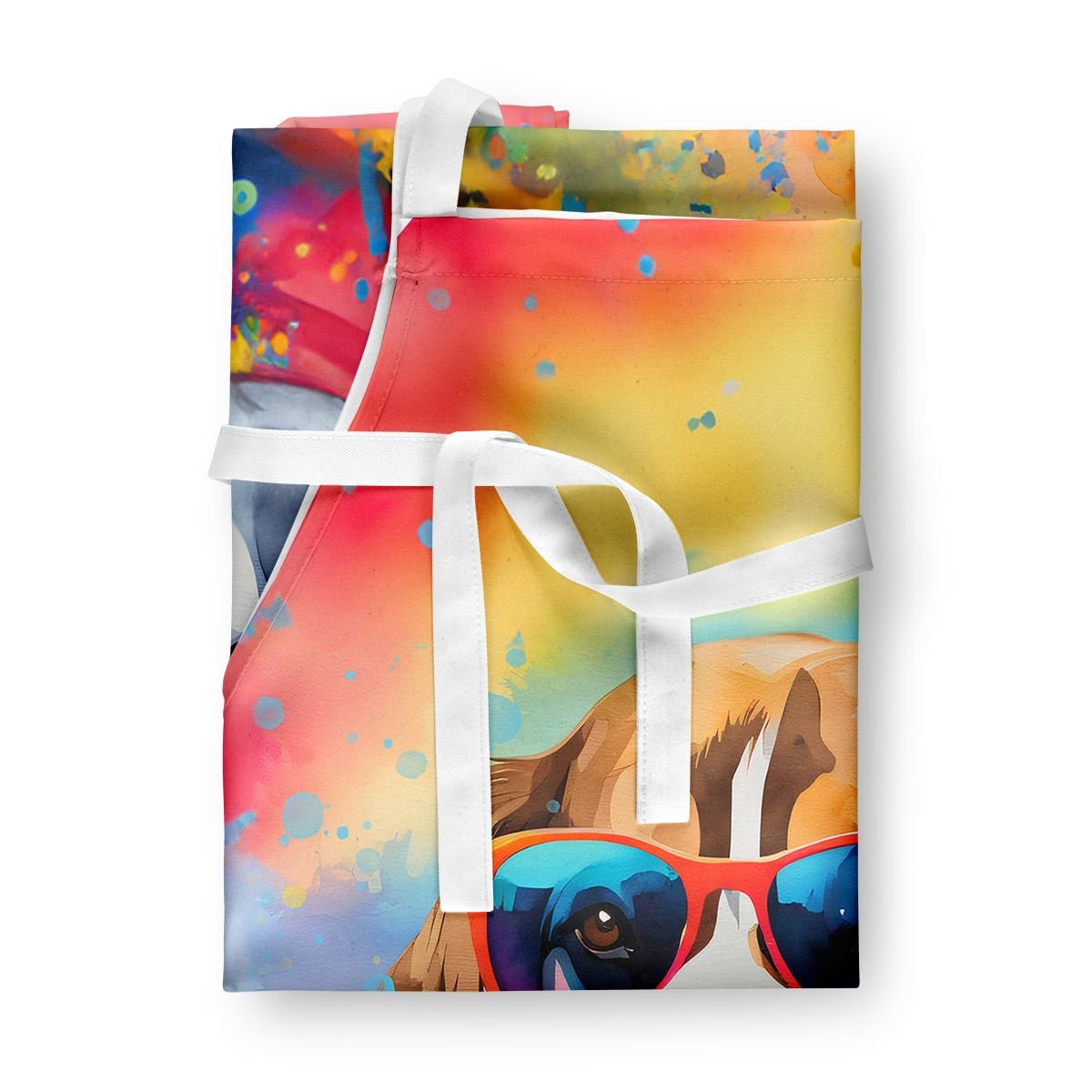 Apron featuring breed specific Beagle artwork. Elevate your cooking, baking, and grilling experiences with our versatile Kitchen or BBQ Apron. This Bib Style apron isn't just limited to culinary activities - it also serves as an excellent baking apron, artist apron, server apron, gardening apron, or even a dog grooming apron. The apron showcases vibrant full-color artwork contributed by one of our talented artists, bringing a dash of style to your daily tasks. With dimensions of approximately 27"W x 30"H, it provides ample coverage to protect your clothing from spills and splashes. Our apron is meticulously crafted from 100% Ultra Spun Polyester, known for its durability and lightweight nature. The apron comes with white tie straps, ensuring a comfortable and adjustable fit for all. It's a perfect choice for kitchen apron enthusiasts, whether you are a woman or a man. Designed for easy maintenance, this apron is fully machine washable. The quick-drying polyester material actively reduces staining, keeping your apron looking fresh and new for longer. Our beautifully designed apron isn't just a functional kitchen accessory - it's a fashion statement in the culinary world!