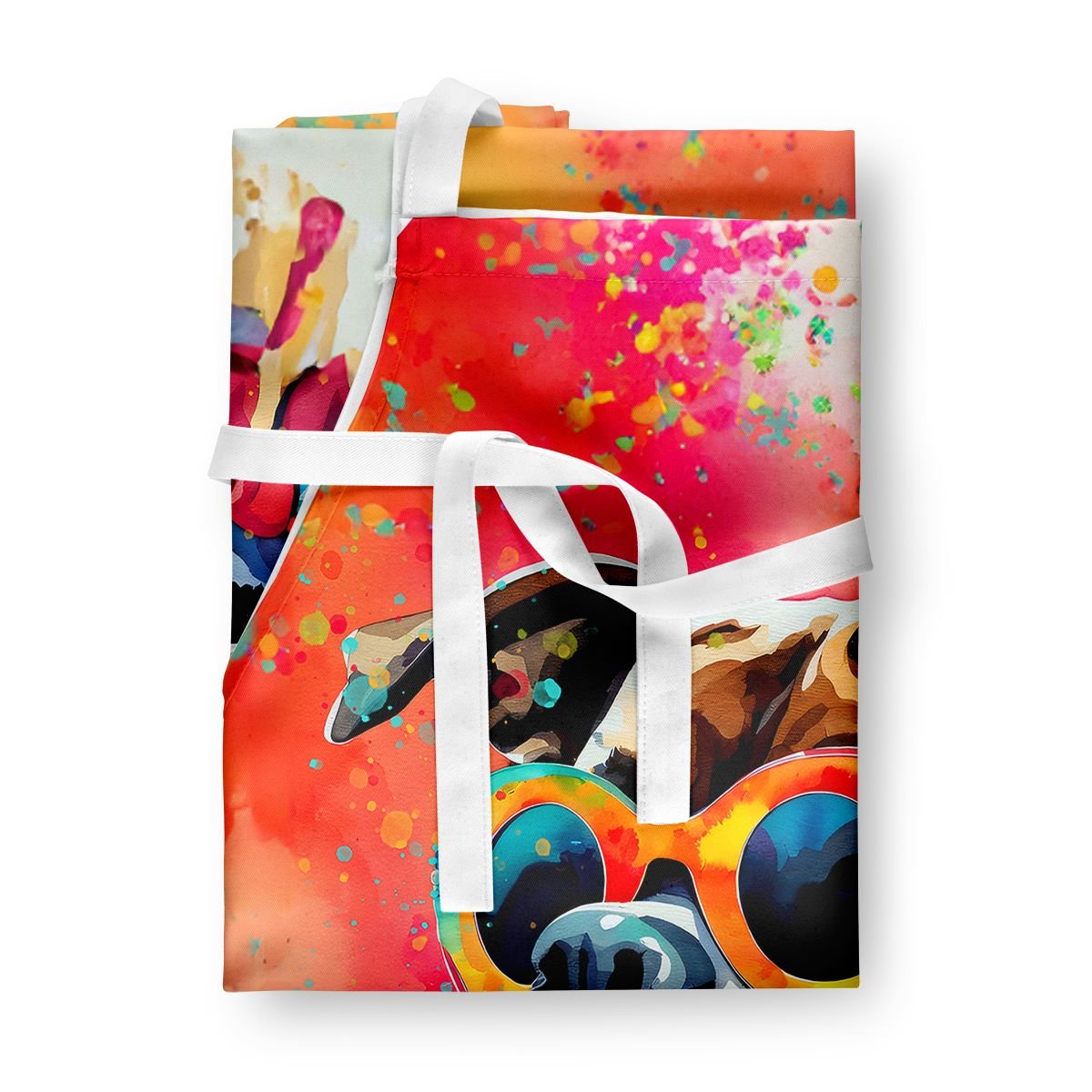 Apron featuring breed specific Boxer artwork. Elevate your cooking, baking, and grilling experiences with our versatile Kitchen or BBQ Apron. This Bib Style apron isn't just limited to culinary activities - it also serves as an excellent baking apron, artist apron, server apron, gardening apron, or even a dog grooming apron. The apron showcases vibrant full-color artwork contributed by one of our talented artists, bringing a dash of style to your daily tasks. With dimensions of approximately 27"W x 30"H, it provides ample coverage to protect your clothing from spills and splashes. Our apron is meticulously crafted from 100% Ultra Spun Polyester, known for its durability and lightweight nature. The apron comes with white tie straps, ensuring a comfortable and adjustable fit for all. It's a perfect choice for kitchen apron enthusiasts, whether you are a woman or a man. Designed for easy maintenance, this apron is fully machine washable. The quick-drying polyester material actively reduces staining, keeping your apron looking fresh and new for longer. Our beautifully designed apron isn't just a functional kitchen accessory - it's a fashion statement in the culinary world!