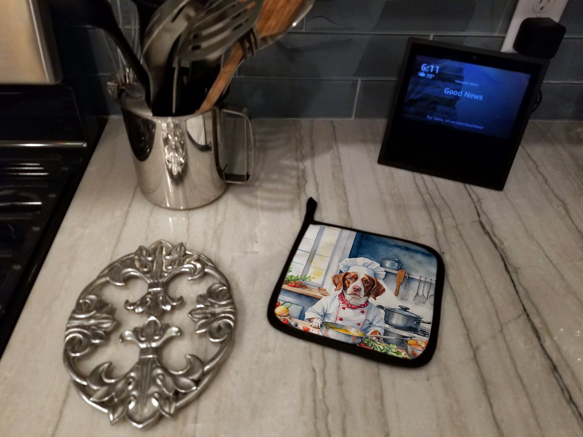 Home > Brittany Spaniel The Chef Pair of Pot Holders Kitchen Heat Resistant Pot Holders Sets Oven Hot Pads for Cooking Baking BBQ, 7 1/2 x 7 1/2