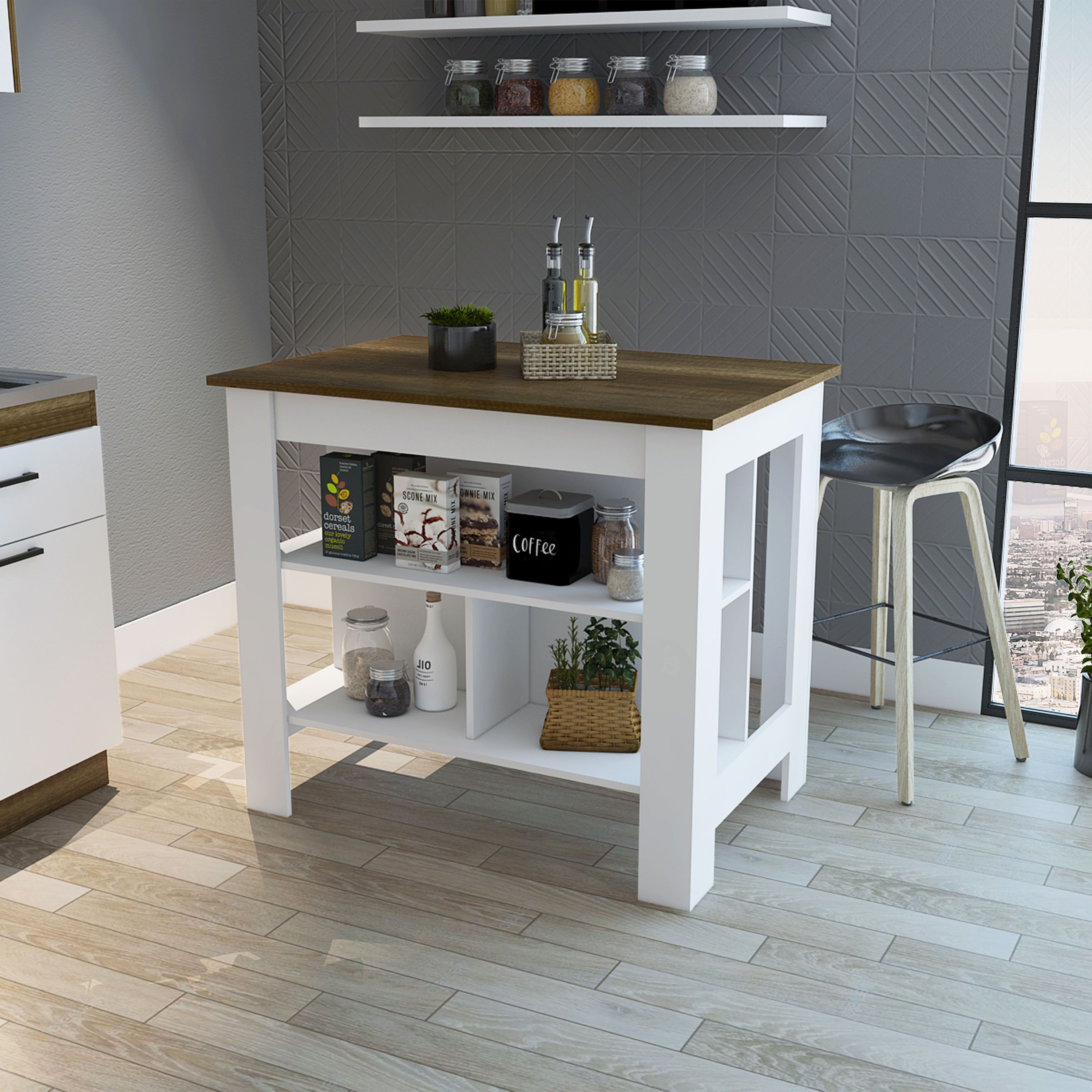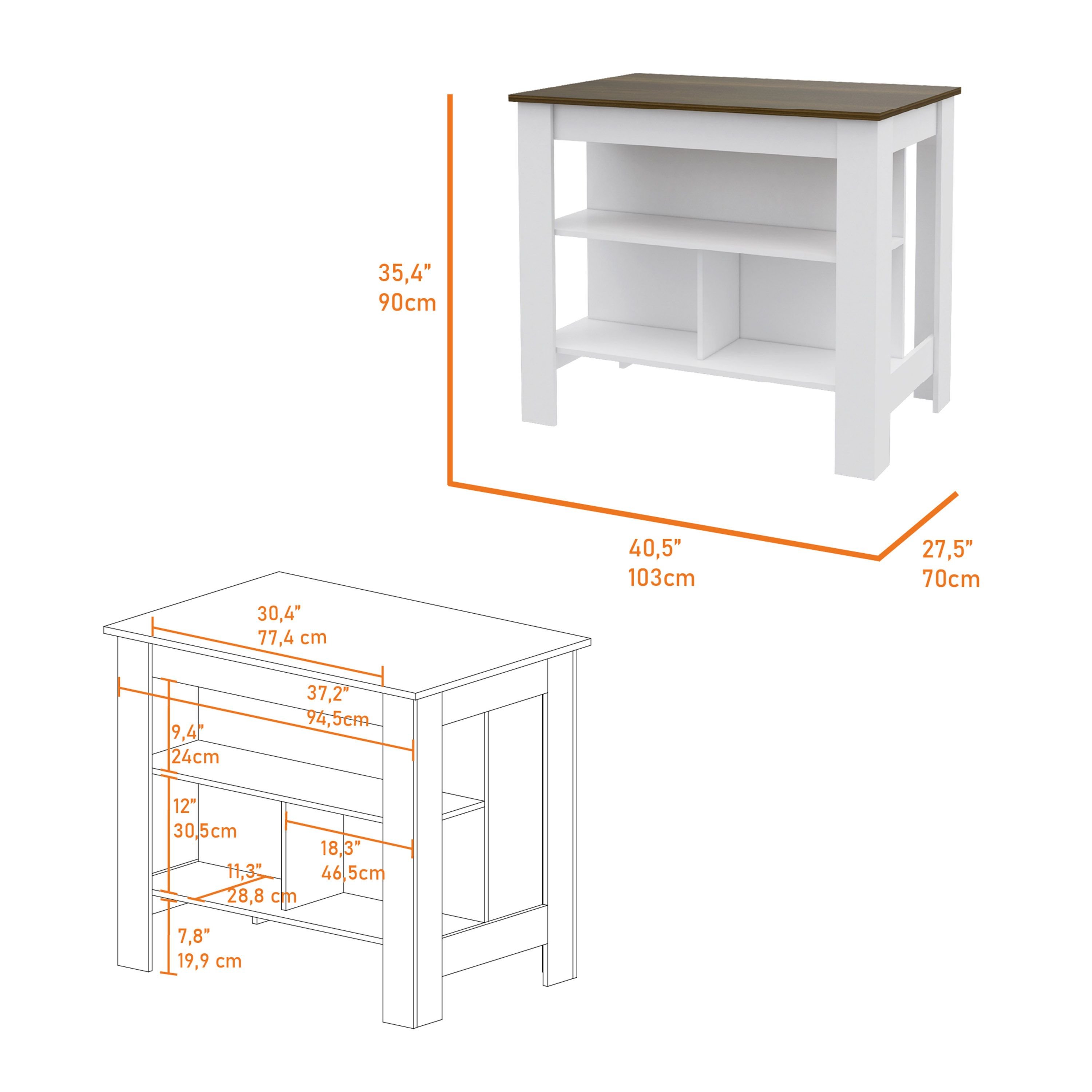 Cala Kitchen Island, Four Legs, Three Shelves -White / Walnut