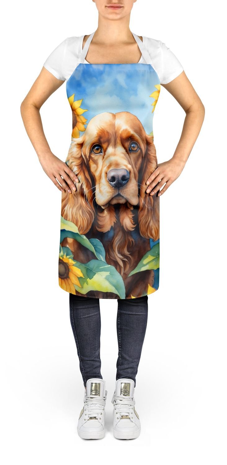 Cocker Spaniel in Sunflowers Apron Cooking Kitchen Server Baking Crafts Gardening for Adult Women Men, Unisex, Large, Multicolor