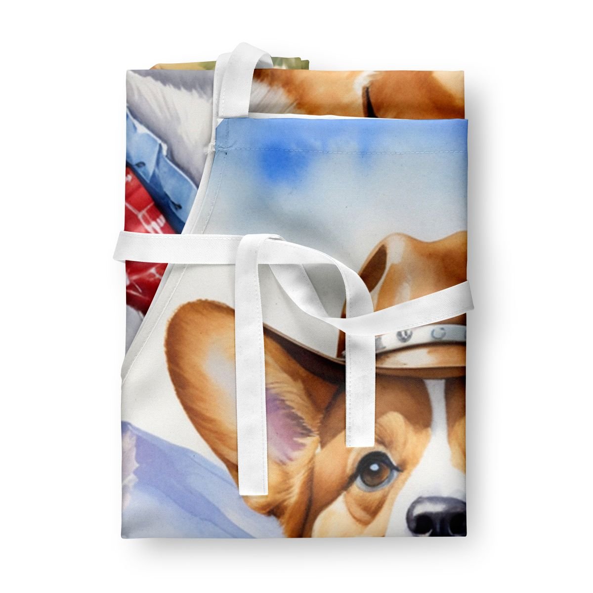 Apron featuring breed specific Corgi artwork. Elevate your cooking, baking, and grilling experiences with our versatile Kitchen or BBQ Apron. This Bib Style apron isn't just limited to culinary activities - it also serves as an excellent baking apron, artist apron, server apron, gardening apron, or even a dog grooming apron. The apron showcases vibrant full-color artwork contributed by one of our talented artists, bringing a dash of style to your daily tasks. With dimensions of approximately 27"W x 30"H, it provides ample coverage to protect your clothing from spills and splashes. Our apron is meticulously crafted from 100% Ultra Spun Polyester, known for its durability and lightweight nature. The apron comes with white tie straps, ensuring a comfortable and adjustable fit for all. It's a perfect choice for kitchen apron enthusiasts, whether you are a woman or a man. Designed for easy maintenance, this apron is fully machine washable. The quick-drying polyester material actively reduces staining, keeping your apron looking fresh and new for longer. Our beautifully designed apron isn't just a functional kitchen accessory - it's a fashion statement in the culinary world!