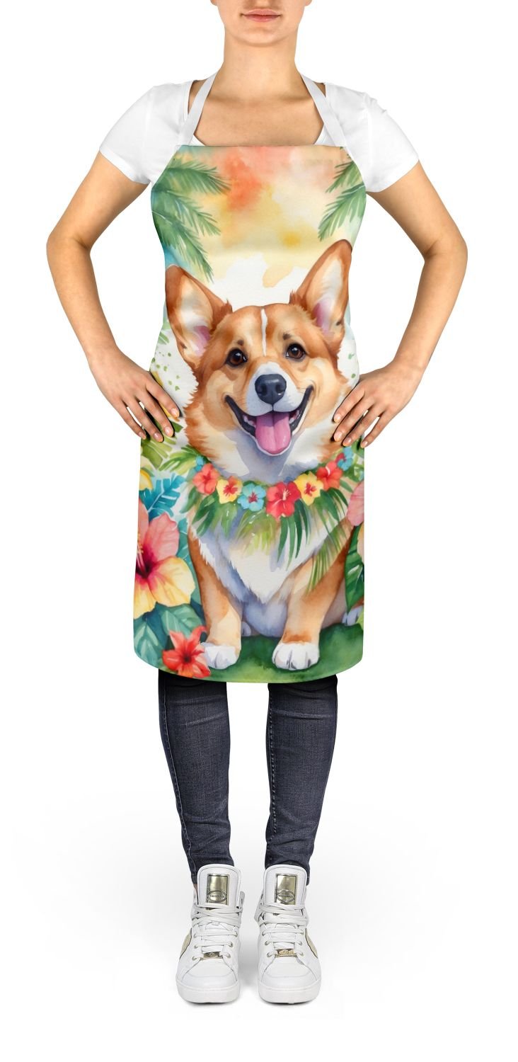 Corgi Luau Apron Cooking Kitchen Server Baking Crafts Gardening for Adult Women Men, Unisex, Large, Multicolor