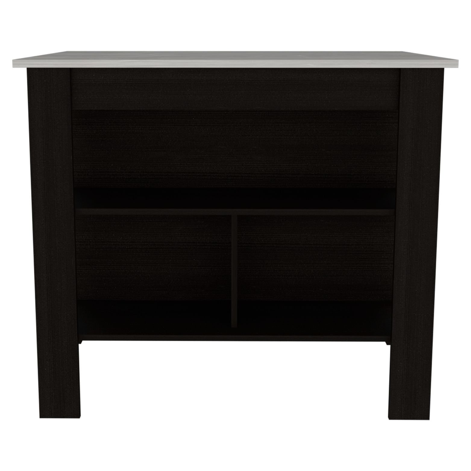 Home > DEPOT E-SHOP Delos Kitchen Island, Four Legs, Three Shelves, Black / Ibiza Marble
