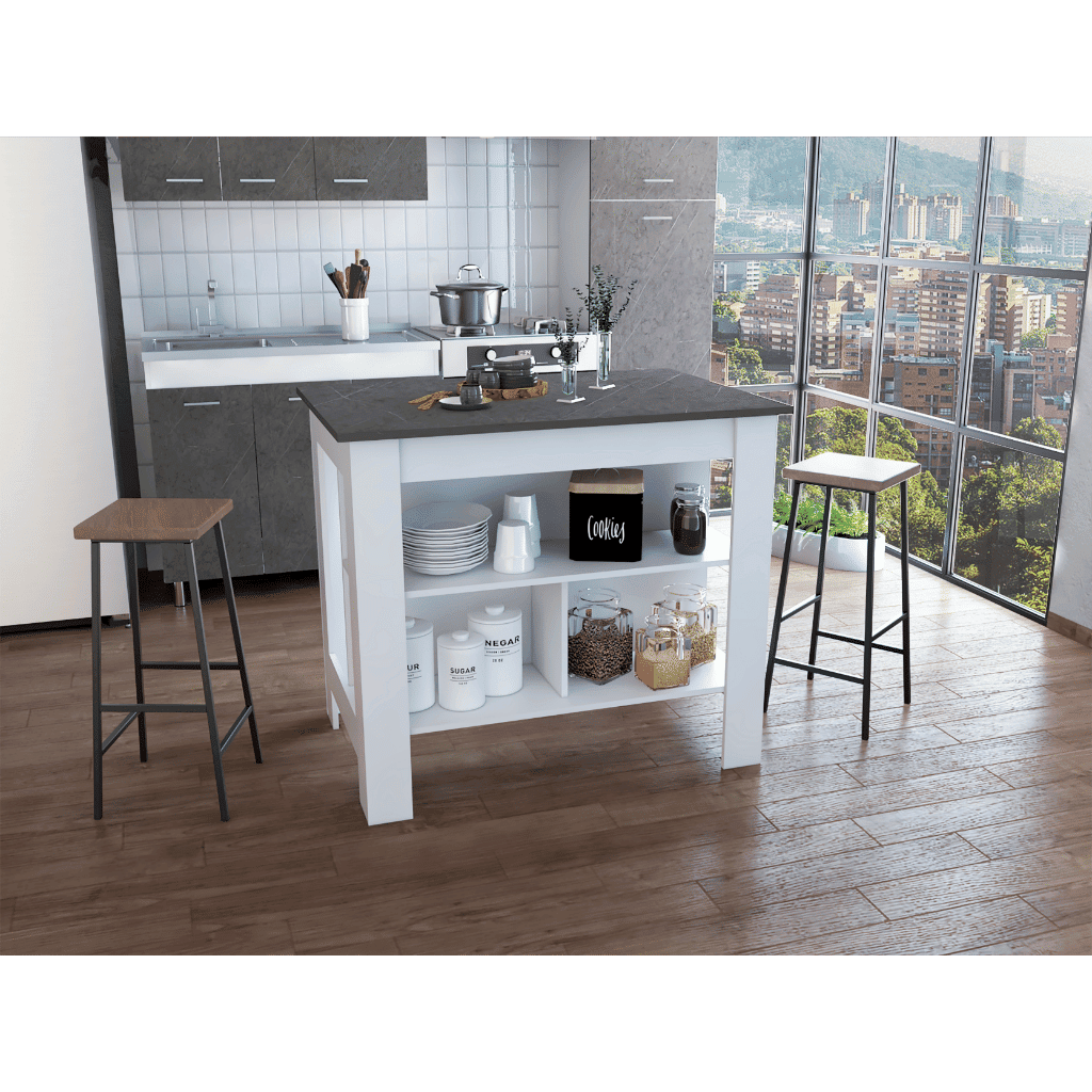 DEPOT E-SHOP Delos Kitchen Island, Four Legs, Three Shelves, White / Onix DEPOT E-SHOP Delos Kitchen Island, Four Legs, Three Shelves, White / Onix DEPOT E-SHOP Delos Kitchen Island, Four Legs, Three Shelves, White / Onix