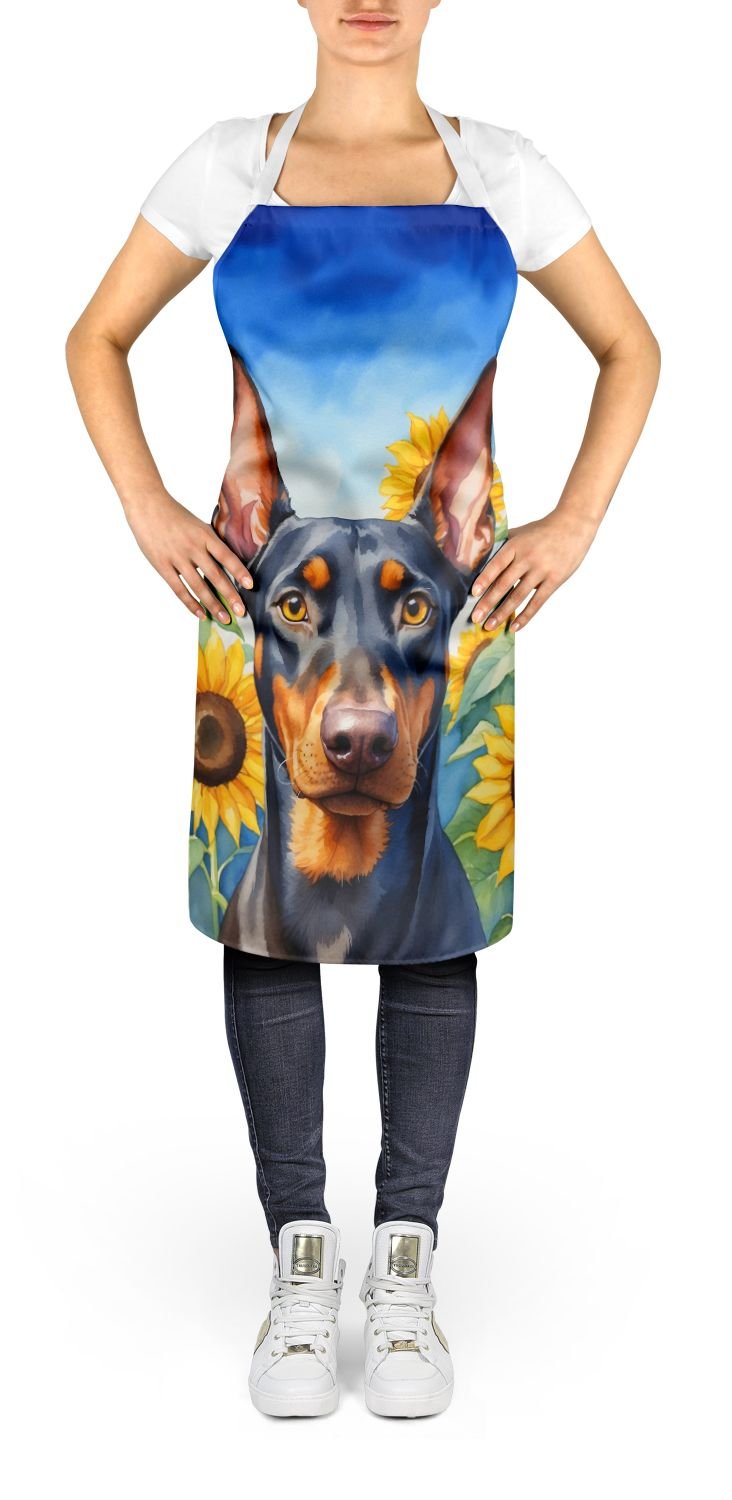 Doberman Pinscher in Sunflowers Apron Cooking Kitchen Server Baking Crafts Gardening for Adult Women Men, Unisex, Large, Multicolor