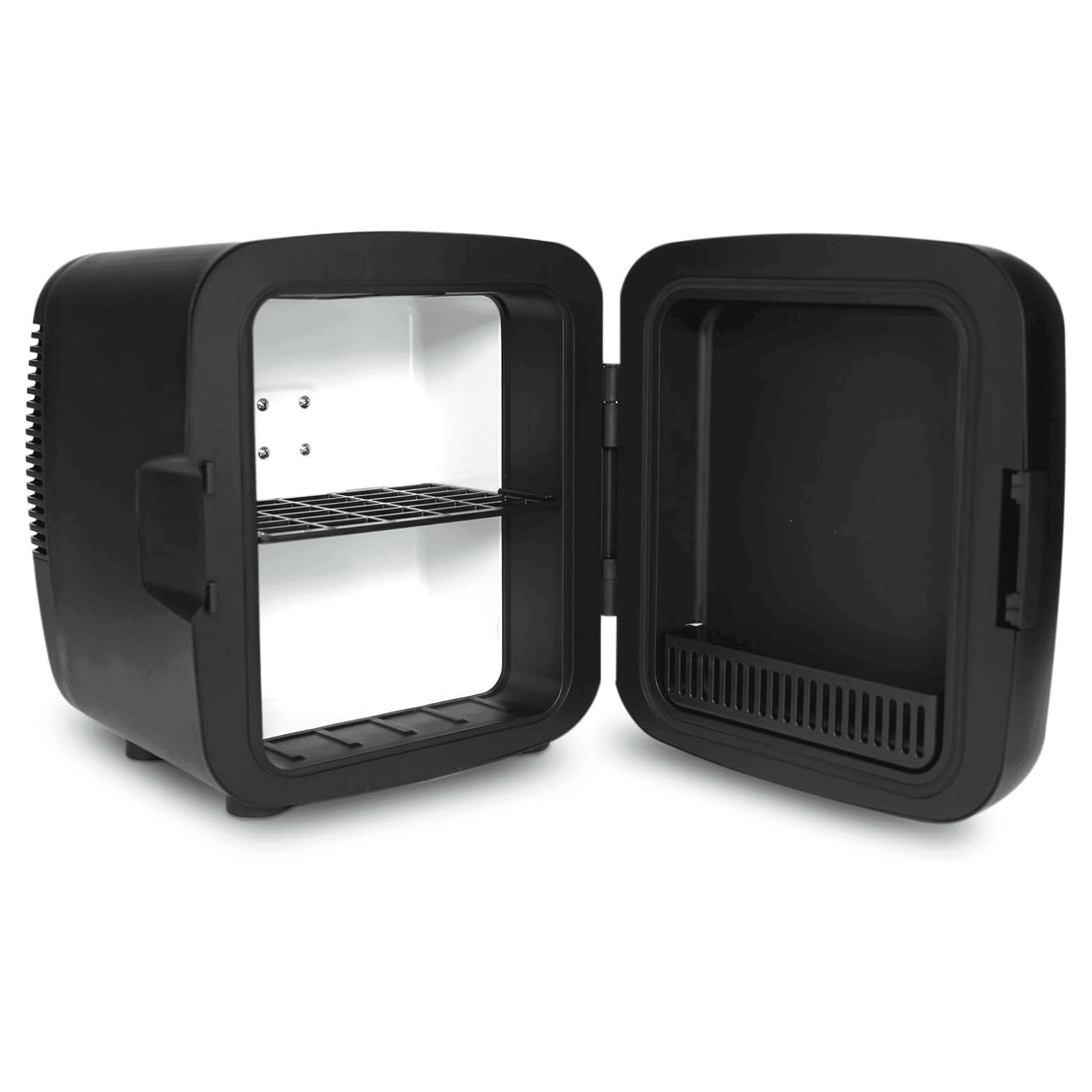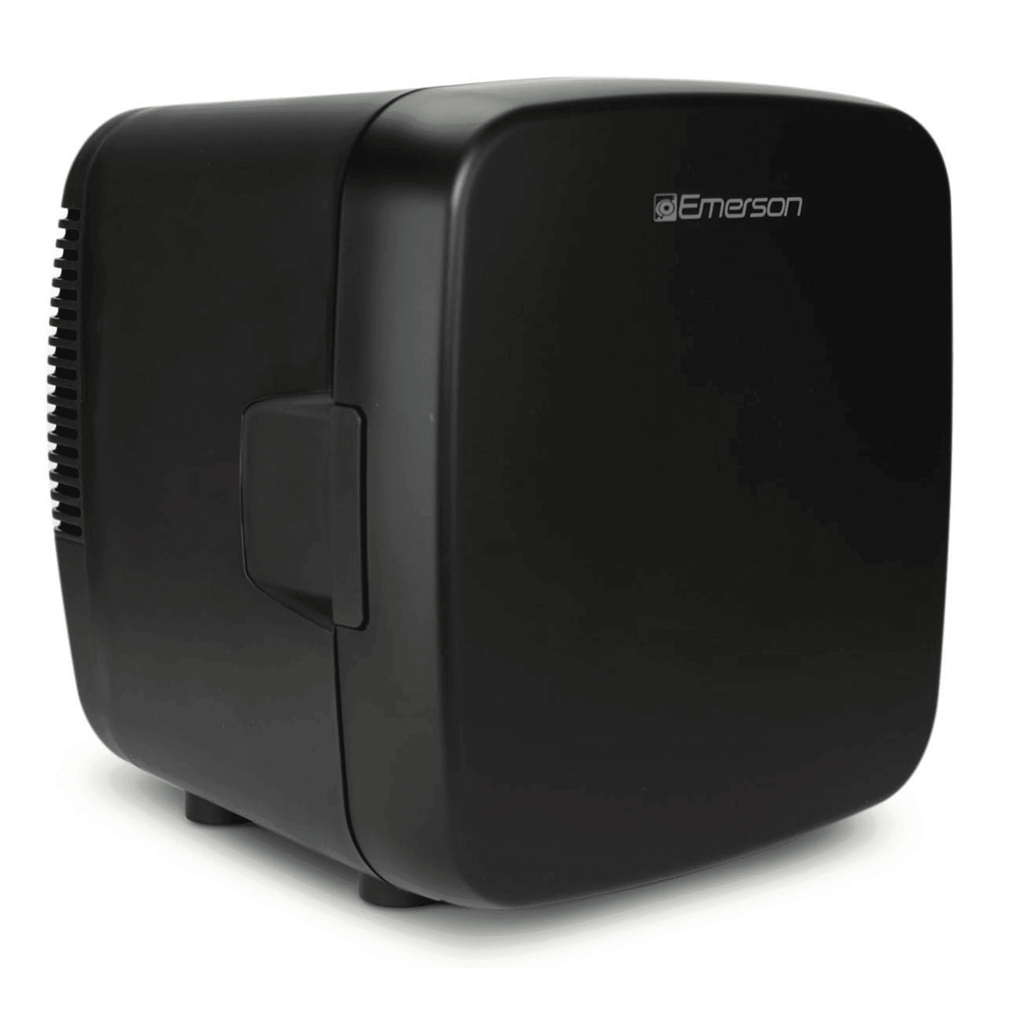 Emerson's 9-liter mini fridge is the perfect solution for storing up to 12 cans (12 oz) of snacks and beverages. It features a thermoelectric cooling system that operates quietly and cools to 28-30 degrees F below the ambient temperature. The fridge is equipped with a locking latch mechanism, and a space-saving design, and it comes with an AC/DC power adapter. Get yours today and enjoy chilled drinks and snacks anytime, anywhere! The compact size of the mini fridge allows it to fit virtually anywhere, making it a convenient addition to any room.