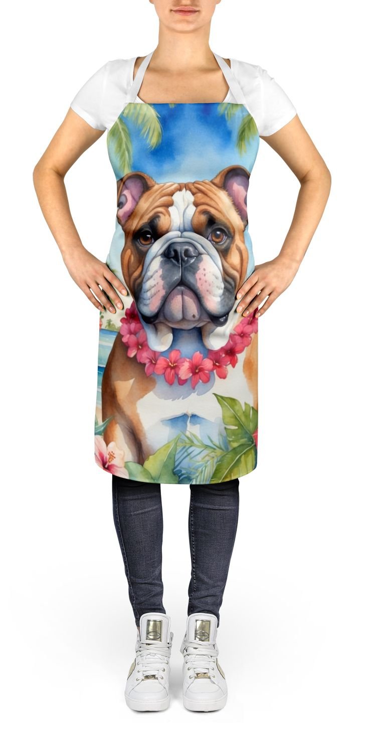 English Bulldog Luau Apron Cooking Kitchen Server Baking Crafts Gardening for Adult Women Men, Unisex, Large, Multicolor
