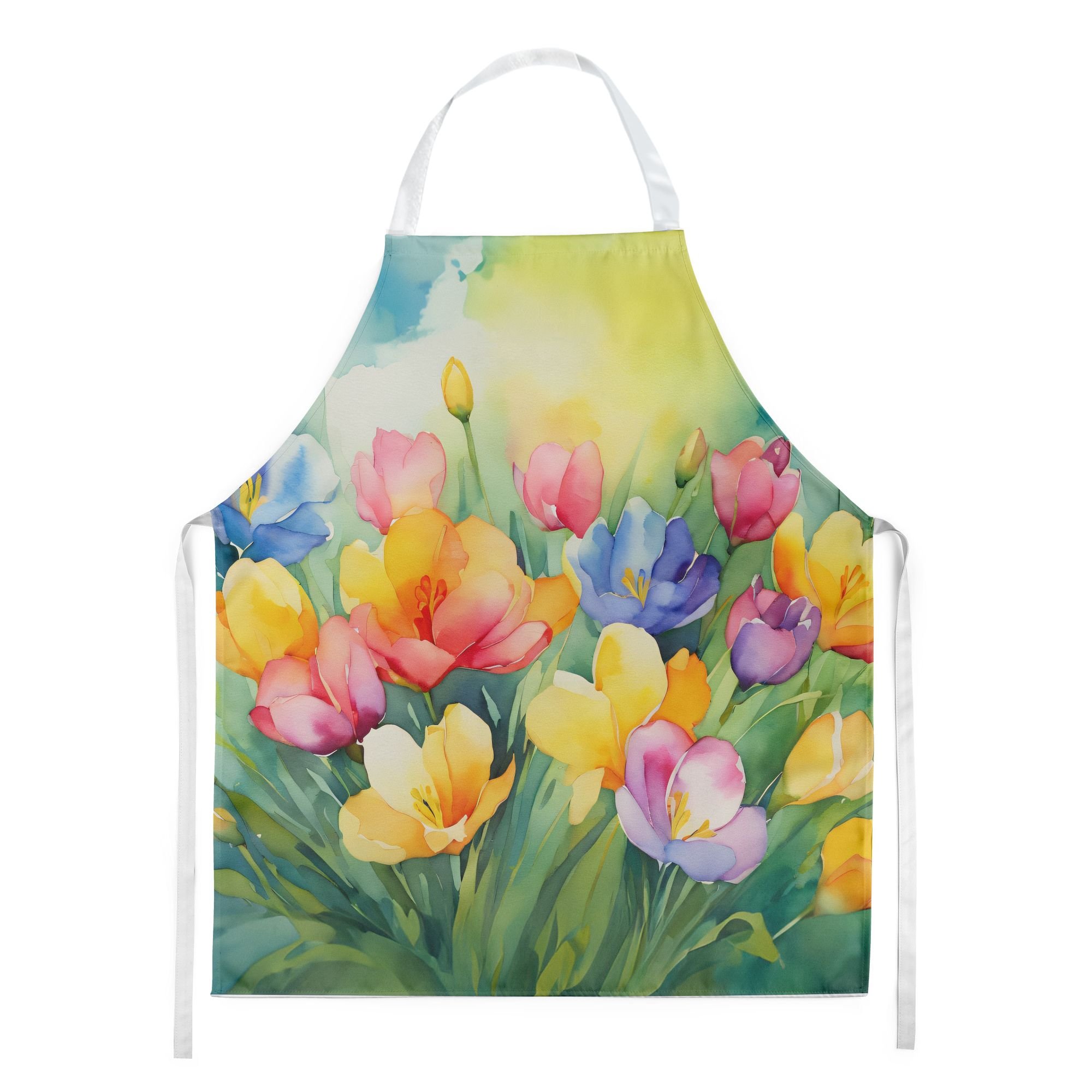 Home > Freesias in Watercolor Apron Cooking Kitchen Server Baking Crafts Gardening for Adult Women Men, Unisex, Large, Multicolor