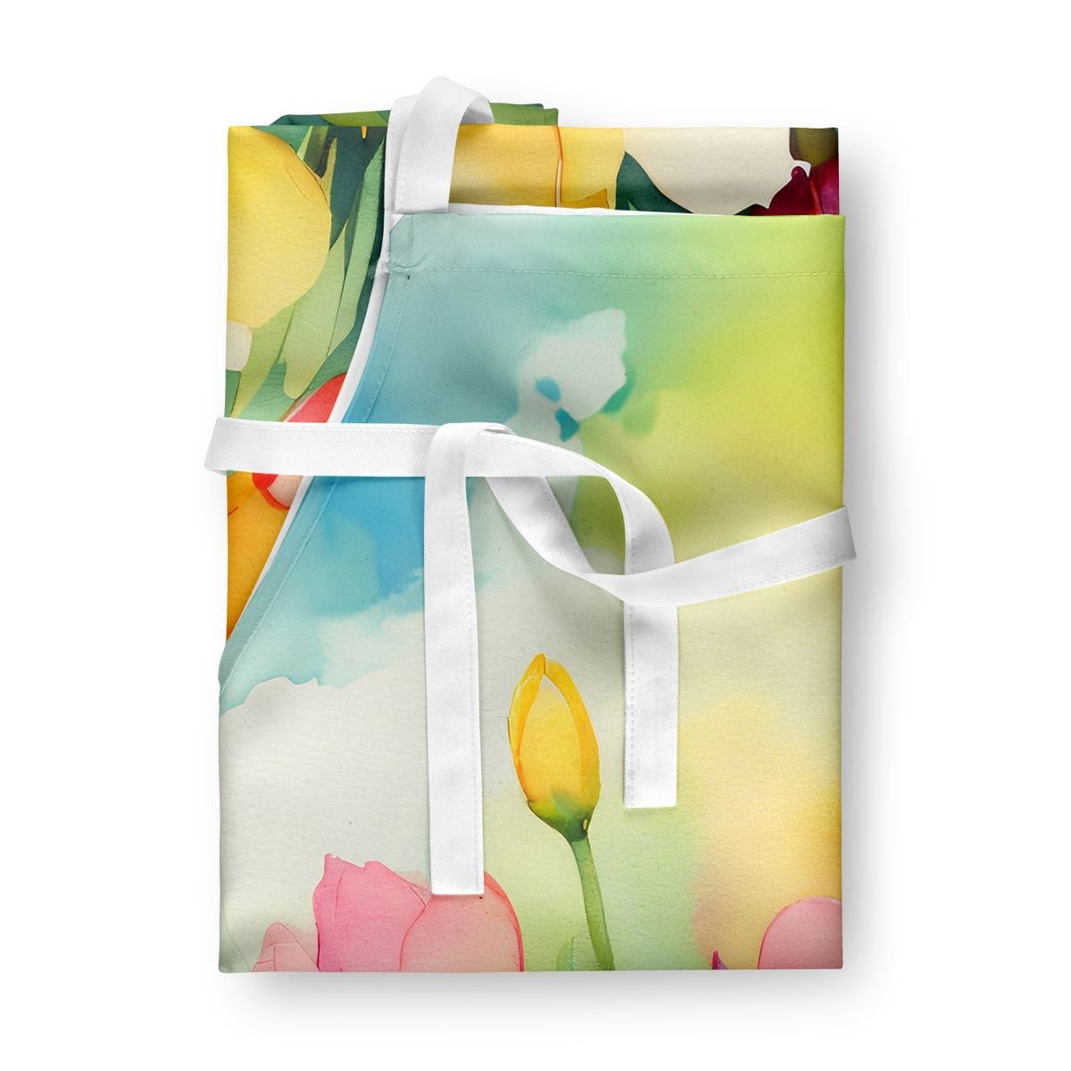 Freesias in Watercolor Apron Cooking Kitchen Server Baking Crafts Gardening for Adult Women Men, Unisex, Large, Multicolor