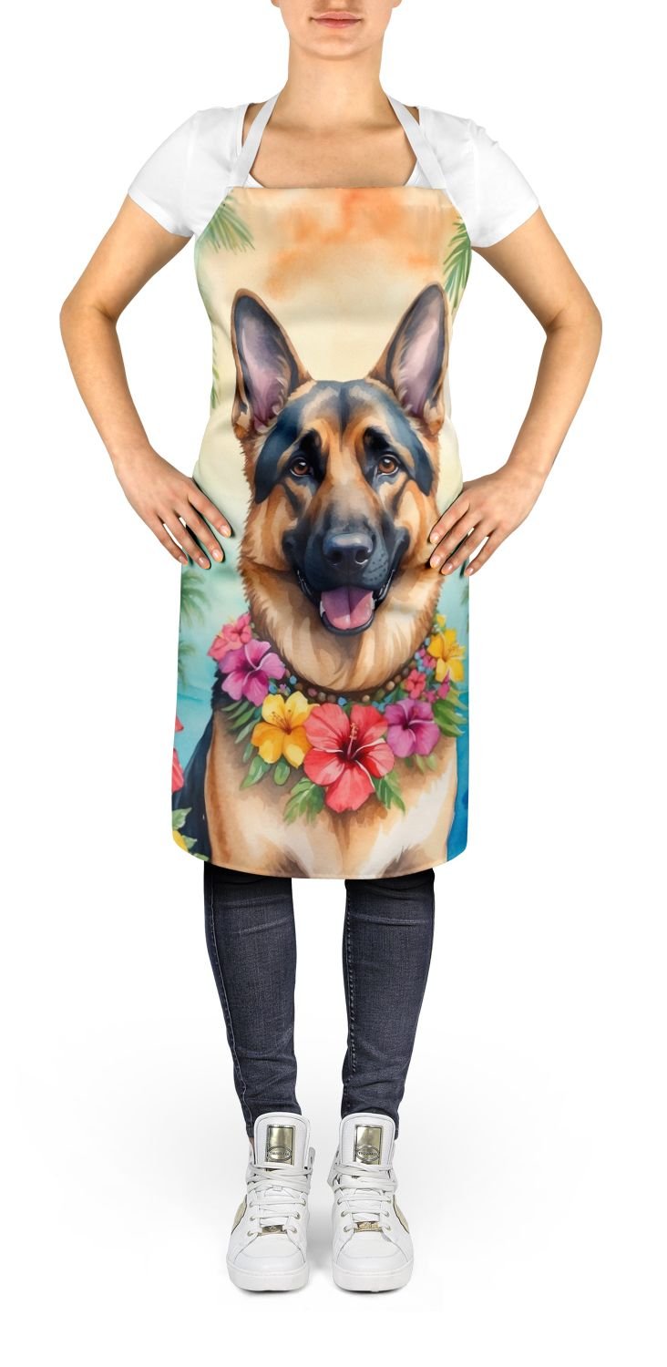 German Shepherd Luau Apron Cooking Kitchen Server Baking Crafts Gardening for Adult Women Men, Unisex, Large, Multicolor