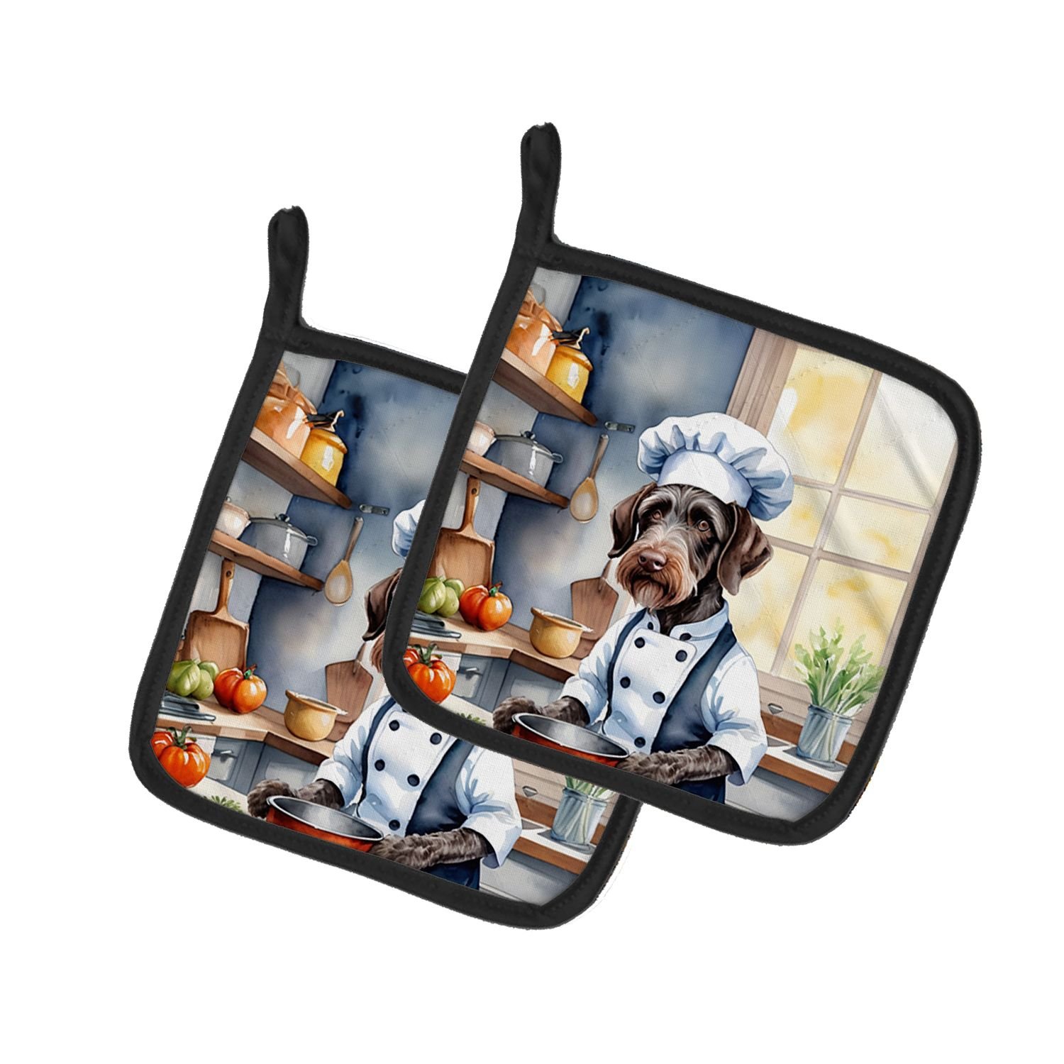 Home > German Wirehaired Pointer The Chef Pair of Pot Holders Kitchen Heat Resistant Pot Holders Sets Oven Hot Pads for Cooking Baking BBQ, 7 1/2 x 7 1/2