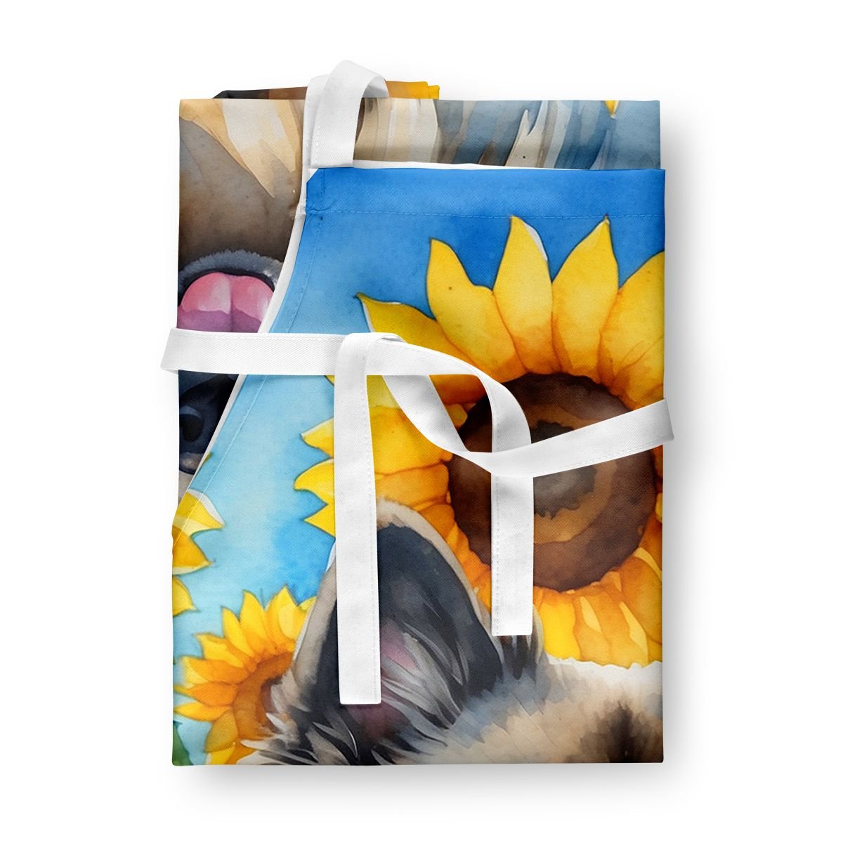 Keeshond in Sunflowers Apron Cooking Kitchen Server Baking Crafts Gardening for Adult Women Men, Unisex, Large, Multicolor