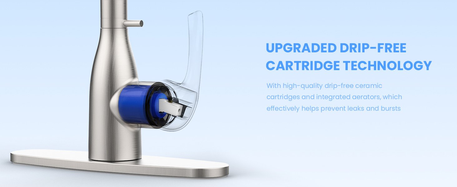 [Locking Buckle Design]- The Kitchen faucet have locking buckle design witch can keep the sprayer at the length you want.Make it more convenient for you to use.