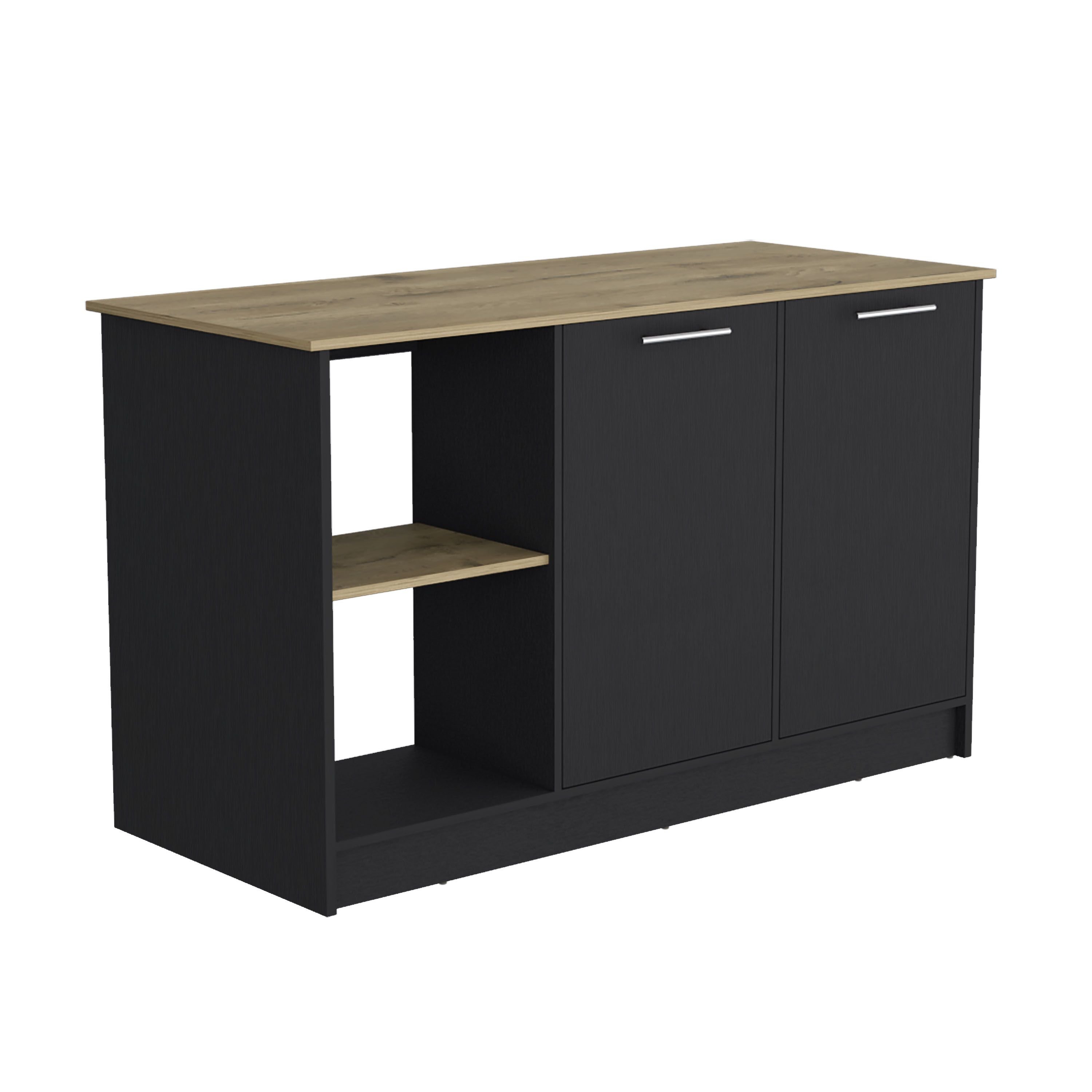 The two open shelves are perfect for placing frequently used items, such as cookbooks, utensils, and spices.