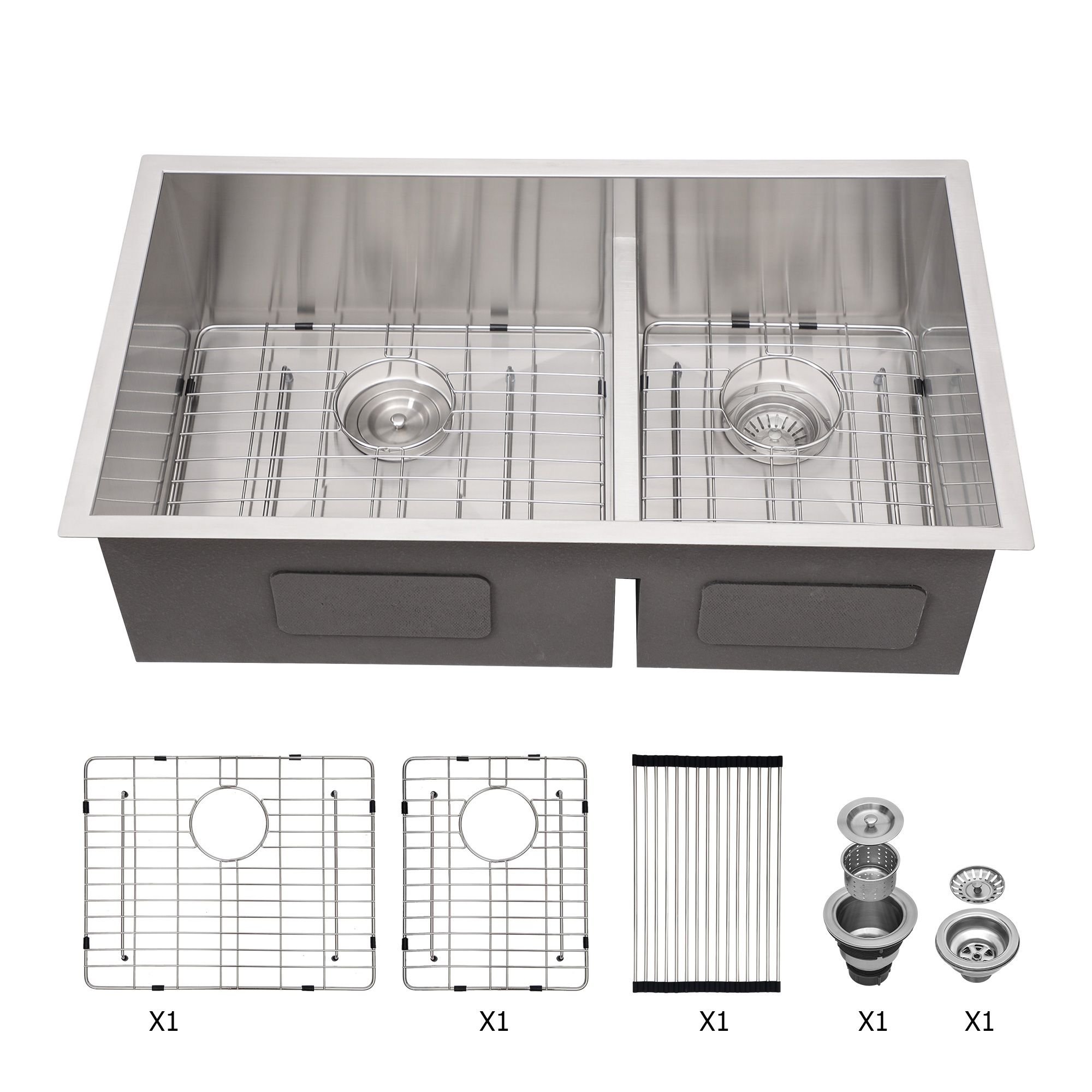 1.Heavy duty SOUND PROOF UNDERCOATING and THICK RUBBER PADDING to minimize noise and reduce condensation | Sloped bottom with grooves to allow complete water drainage | Commercial grade BRUSHED FINISH - Easy to clean and long-lasting.