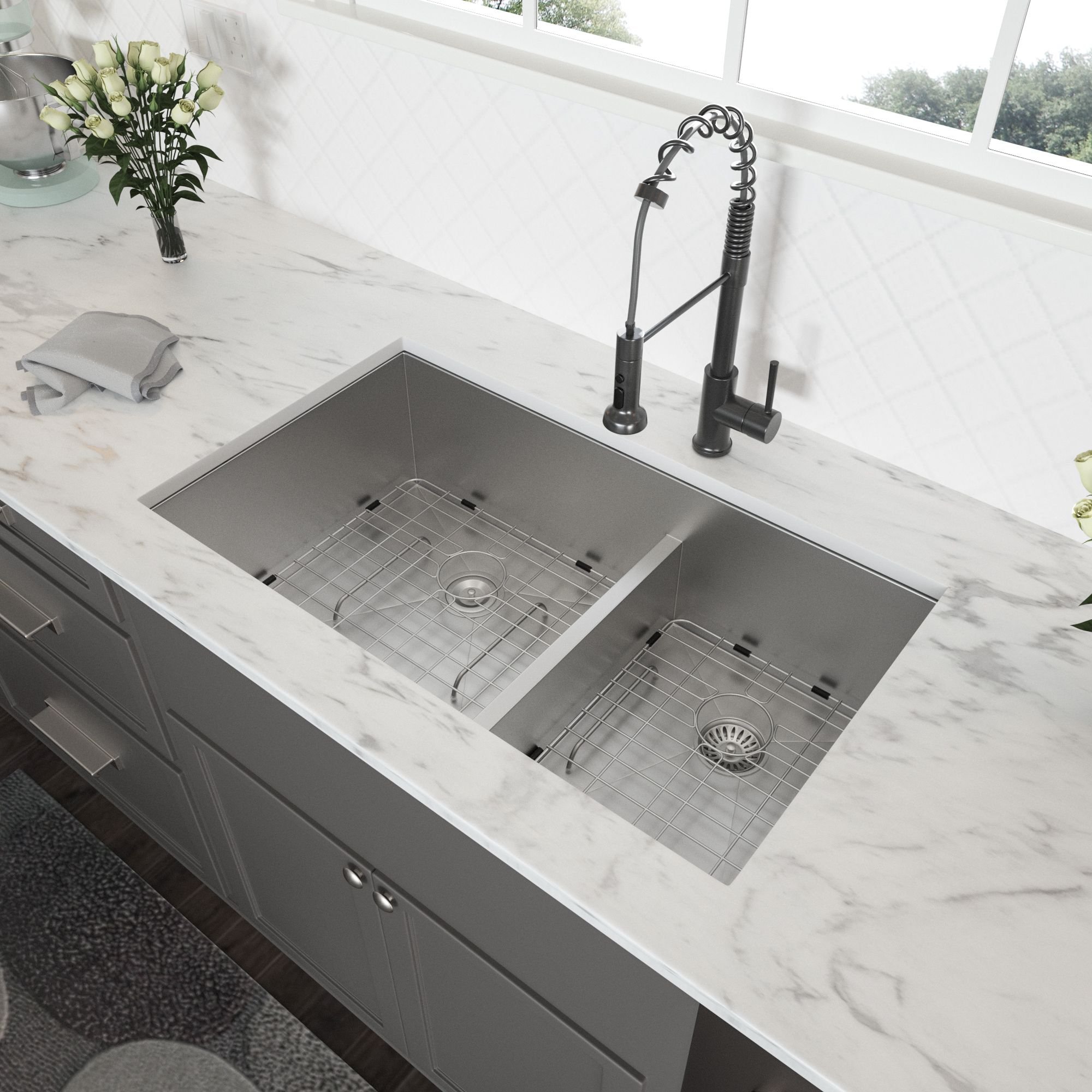 4.There are 33" 50/50 undermount double kitchen sink, 33" 60/40 double sink undermount sinks and 28" 60/40 double sink undermount sinks to choose.