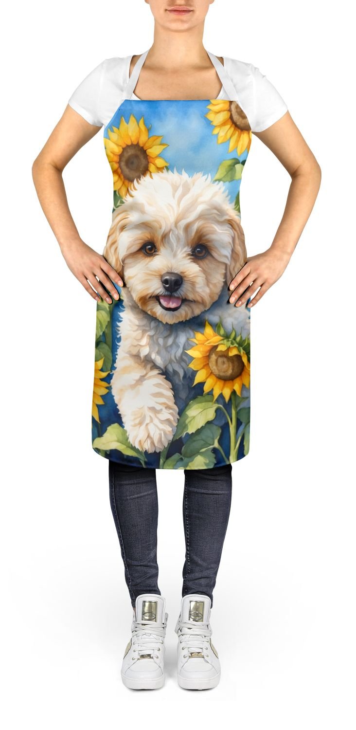 Maltipoo in Sunflowers Apron Cooking Kitchen Server Baking Crafts Gardening for Adult Women Men, Unisex, Large, Multicolor