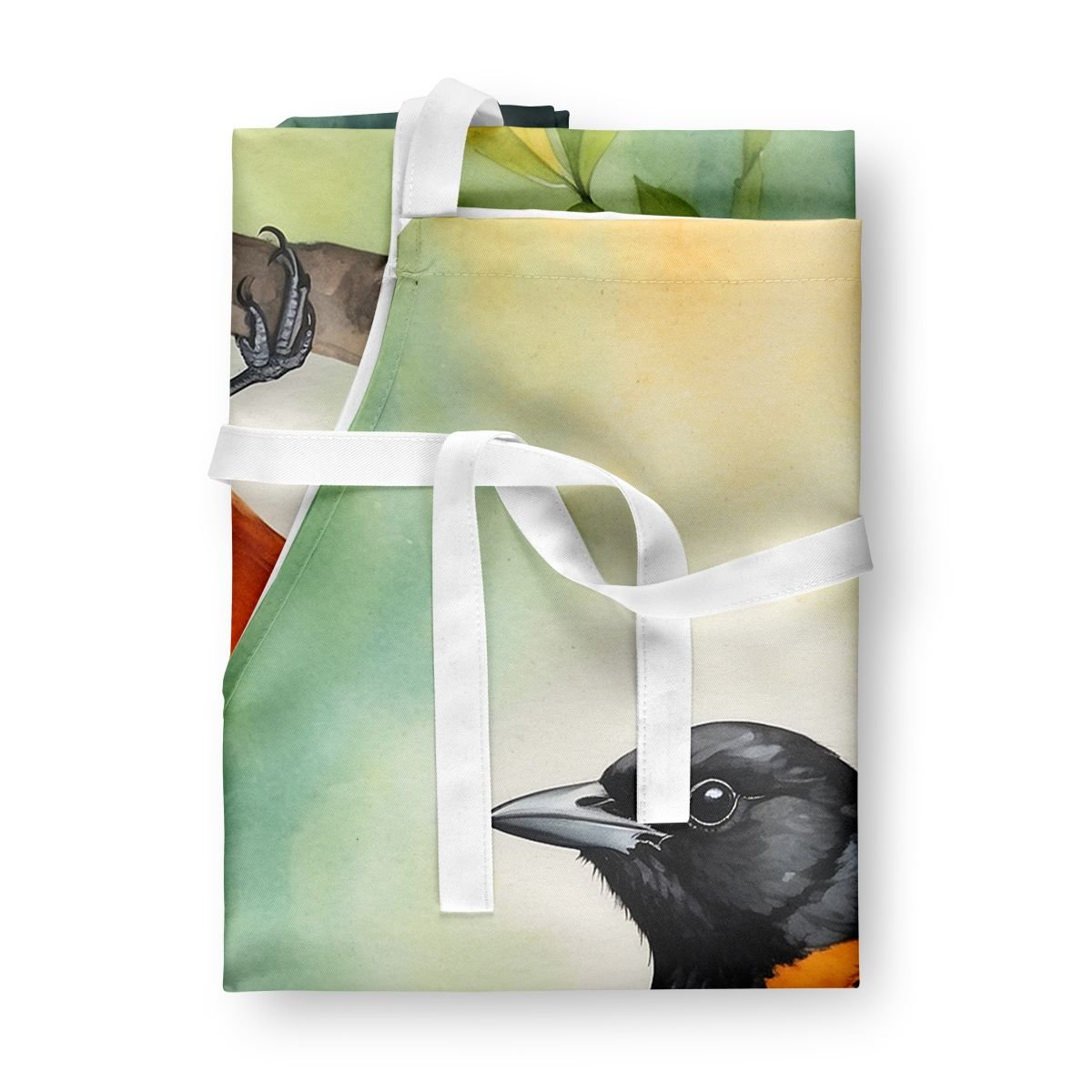 Apron featuring breed specific Baltimore Oriole artwork. Elevate your cooking, baking, and grilling experiences with our versatile Kitchen or BBQ Apron. This Bib Style apron isn't just limited to culinary activities - it also serves as an excellent baking apron, artist apron, server apron, gardening apron, or even a dog grooming apron. The apron showcases vibrant full-color artwork contributed by one of our talented artists, bringing a dash of style to your daily tasks. With dimensions of approximately 27"W x 30"H, it provides ample coverage to protect your clothing from spills and splashes. Our apron is meticulously crafted from 100% Ultra Spun Polyester, known for its durability and lightweight nature. The apron comes with white tie straps, ensuring a comfortable and adjustable fit for all. It's a perfect choice for kitchen apron enthusiasts, whether you are a woman or a man. Designed for easy maintenance, this apron is fully machine washable. The quick-drying polyester material actively reduces staining, keeping your apron looking fresh and new for longer. Our beautifully designed apron isn't just a functional kitchen accessory - it's a fashion statement in the culinary world!