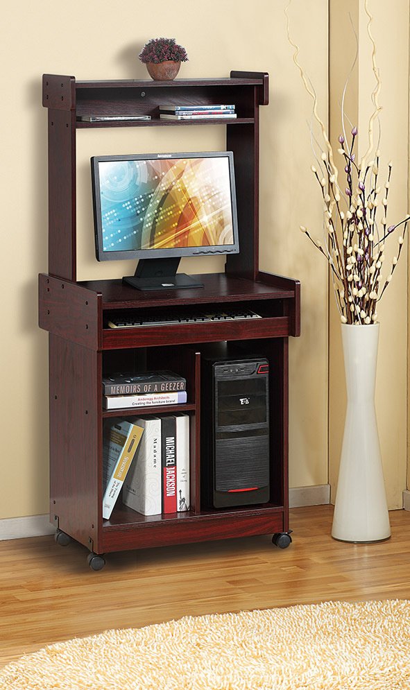 Home > Microwave Cart Coffee Station Computer Cart on locking castors hutch gliding shelf Mahogany color