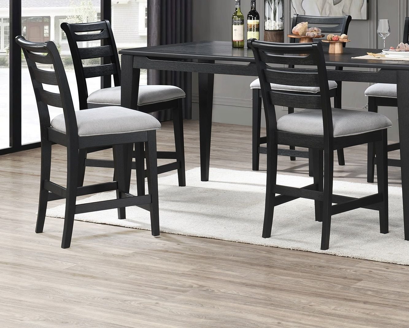 With its elegant ladder-back design and sleek cross bars, this Counter Height chair effortlessly blends modern aesthetics with timeless charm. The ladder-back design not only adds visual interest but also provides excellent support for your back, allowing you to dine in comfort during long meals or gatherings. For added comfort, the seat cushions are upholstered providing a soft and luxurious feel as you sit down to enjoy your favorite meals.