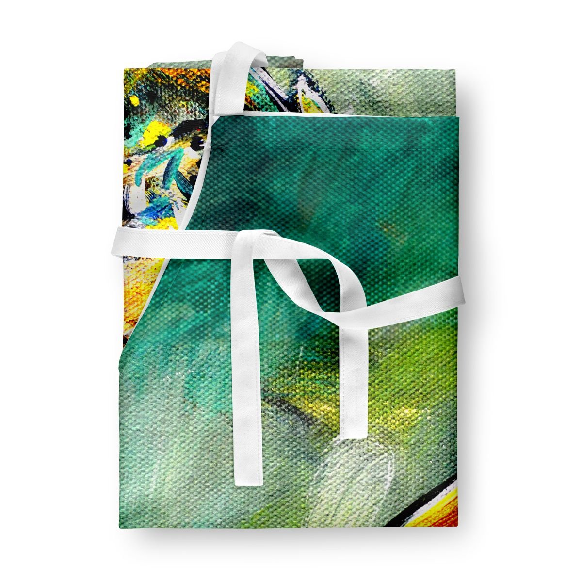Elevate your cooking, baking, and grilling experiences with our versatile Kitchen or BBQ Apron. This Bib Style apron isn't just limited to culinary activities - it also serves as an excellent baking apron, artist apron, server apron, gardening apron, or even a dog grooming apron. The apron showcases vibrant full-color artwork contributed by one of our talented artists, bringing a dash of style to your daily tasks. With dimensions of approximately 27"W x 30"H, it provides ample coverage to protect your clothing from spills and splashes. Our apron is meticulously crafted from 100% Ultra Spun Polyester, known for its durability and lightweight nature. The apron comes with white tie straps, ensuring a comfortable and adjustable fit for all. It's a perfect choice for kitchen apron enthusiasts, whether you are a woman or a man. Designed for easy maintenance, this apron is fully machine washable. The quick-drying polyester material actively reduces staining, keeping your apron looking fresh and new for longer. Our beautifully designed apron isn't just a functional kitchen accessory - it's a fashion statement in the culinary world!