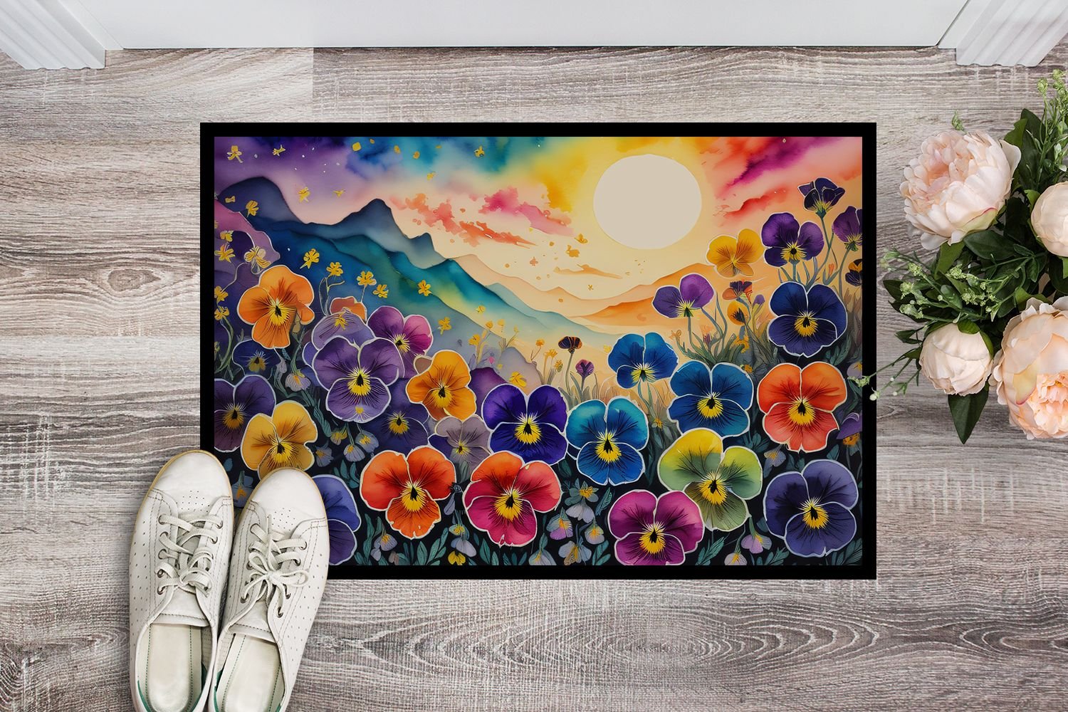 NEW Pansies in Color Doormat Front Door Mat Indoor Outdoor Rugs for Entryway, Non Slip Washable Low Pile, 18H X 27W