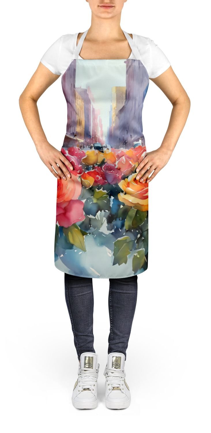 Home > New York Roses in Watercolor Apron Cooking Kitchen Server Baking Crafts Gardening for Adult Women Men, Unisex, Large, Multicolor