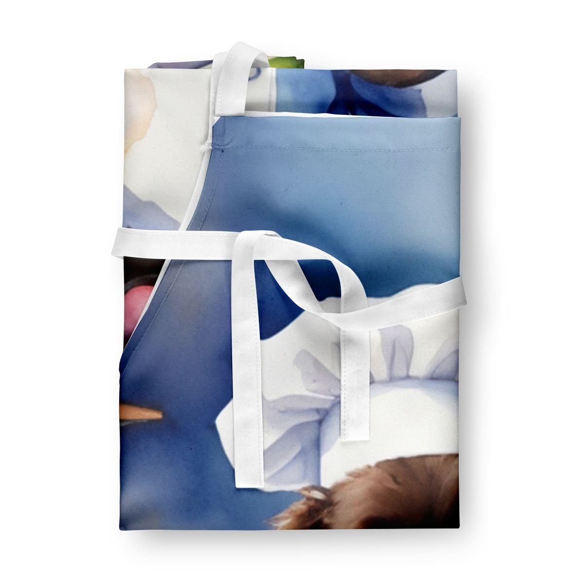 Apron featuring breed specific Newfoundland artwork. Elevate your cooking, baking, and grilling experiences with our versatile Kitchen or BBQ Apron. This Bib Style apron isn't just limited to culinary activities - it also serves as an excellent baking apron, artist apron, server apron, gardening apron, or even a dog grooming apron. The apron showcases vibrant full-color artwork contributed by one of our talented artists, bringing a dash of style to your daily tasks. With dimensions of approximately 27"W x 30"H, it provides ample coverage to protect your clothing from spills and splashes. Our apron is meticulously crafted from 100% Ultra Spun Polyester, known for its durability and lightweight nature. The apron comes with white tie straps, ensuring a comfortable and adjustable fit for all. It's a perfect choice for kitchen apron enthusiasts, whether you are a woman or a man. Designed for easy maintenance, this apron is fully machine washable. The quick-drying polyester material actively reduces staining, keeping your apron looking fresh and new for longer. Our beautifully designed apron isn't just a functional kitchen accessory - it's a fashion statement in the culinary world!