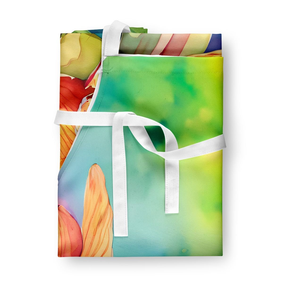 Orchids in Watercolor Apron Cooking Kitchen Server Baking Crafts Gardening for Adult Women Men, Unisex, Large, Multicolor