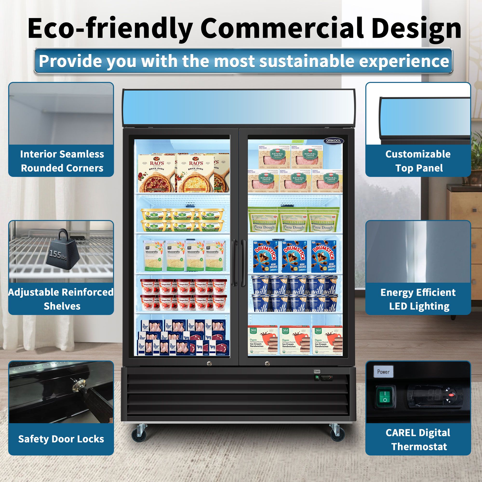 ORIKOOL Glass Door Merchandiser Freezer 44.7 Cu.ft Swing Door Commercial Reach-In Display Freezers with LED Top Panel Upright Freeze Storage ORIKOOL Glass Door Merchandiser Freezer 44.7 Cu.ft Swing Door Commercial Reach-In Display Freezers with LED Top Panel Upright Freeze Storage ORIKOOL Glass Door Merchandiser Freezer 44.7 Cu.ft Swing Door Commercial Reach-In Display Freezers with LED Top Panel Upright Freeze Storage
