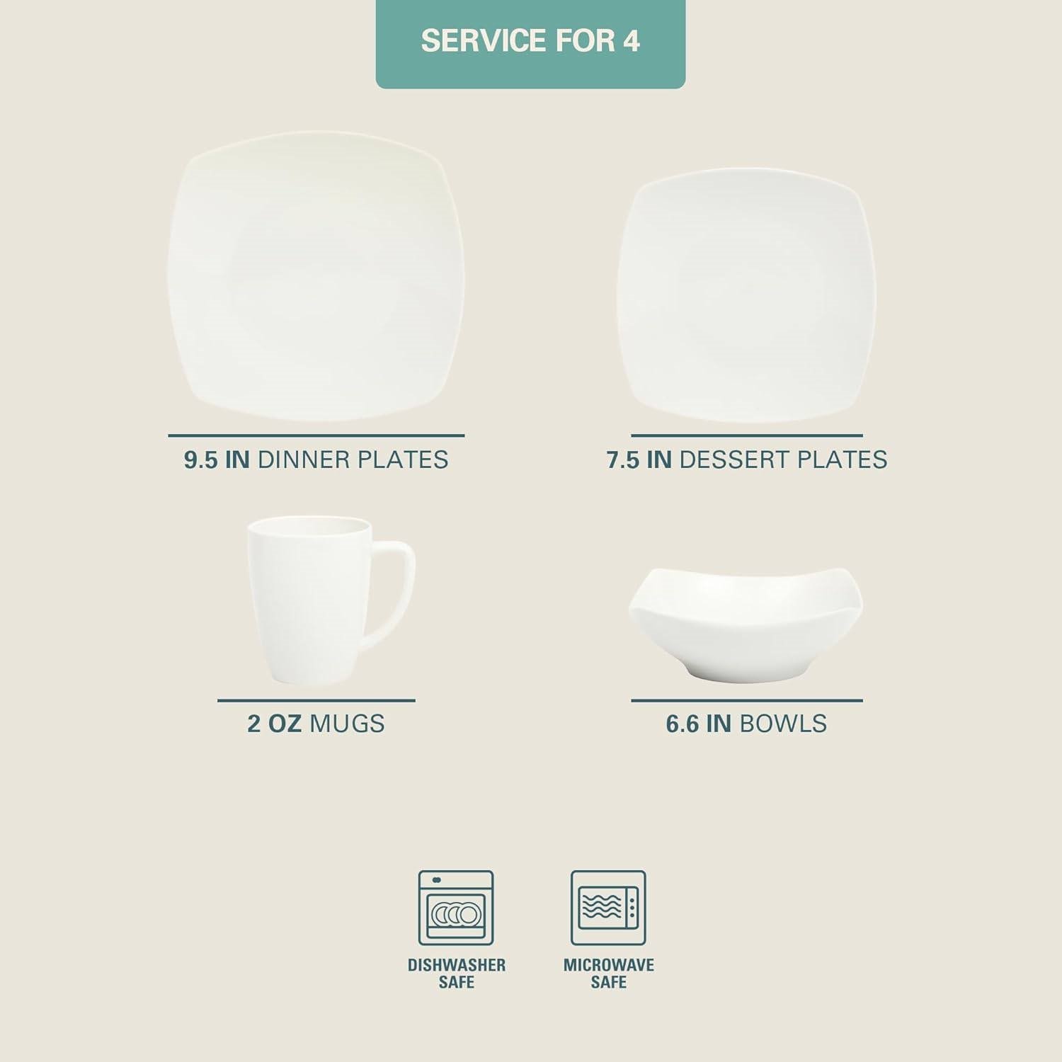 16 Pieces - White Square Porcelain Dinnerware Set - Service for 4 16 Pieces - White Square Porcelain Dinnerware Set - Service for 4 16 Pieces - White Square Porcelain Dinnerware Set - Service for 4 16 Pieces - White Square Porcelain Dinnerware Set - Service for 4 16 Pieces - White Square Porcelain Dinnerware Set - Service for 4