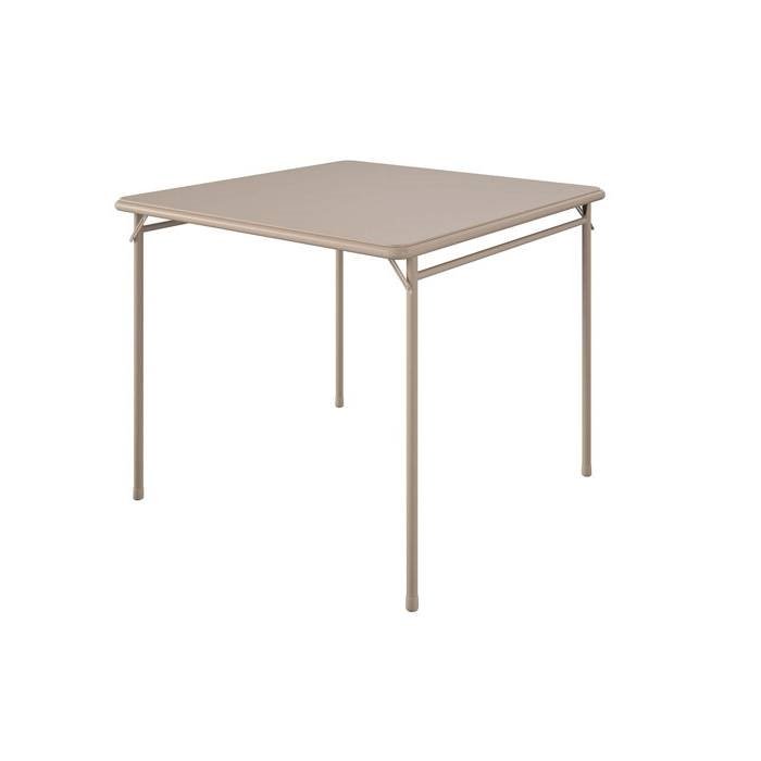 Trusted solution for multipurpose indoor/outdoor dining. Great for holiday gatherings, parties, tailgating, or everyday use. Entertain with ease with this 5-Piece Square Folding Dining Table Guest Dinning Set - Beige! The solution for quickly preparing a comfortable seating arrangement for 4. The set will enhance any atmosphere ranging from family gatherings, parties, or tailgates. Comfortable for entertaining and compact for storage, this set features durable steel frame and a powder-coated finish. This set comes with a sturdy 34" square card table with low maintenance and easy to clean vinyl table top. The cross braces and tube-in-tube reinforced frame of the table to enjoy for years! The 4 chairs, built for maximum comfort and durability, are upholstered in an attractive fabric with padding on the seat and back to relax in style. The tables and chairs are made of a sturdy steel frame and rubber tips to protect your floors. When not in use, the set folds compact for easy storage. The card table has an easy-to-clean vinyl table top and standard 34" dimensions. Versatile table with many utilitarian uses. The table has 100 lbs. weight capacity. Chair cross braces on front and back legs with a tube-in-tube reinforced steel frame for strength and stability. 250 lbs. weight capacity. Great for small space living, with dimensions that make the set easy to store. Chair folds to 2.5" D x 34.4" H x 17.3" W. Table folds to 1.4" D x 34" H x 34" W.