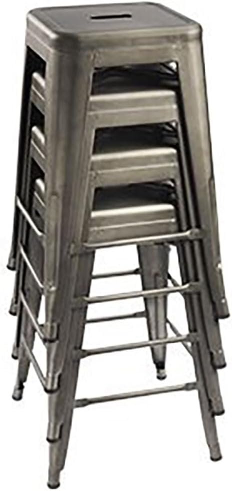 This Set of 4 - 24-in. Indoor/Outdoor Backless Stacking Gunmetal Grey Metal Barstools for convenient storage & space saving use hand-holds make the stools easily to be picked up or moved each lightweight but sturdy stool weighs 11 lbs, while with 330 lbs weight capacity x-brace support under the seat provides additional stability & durability non-mar rubber feet prevent from sliding and scratching floors heavy duty metal construction each metal bar stools 30'' tall, seat size 12 x 12''.