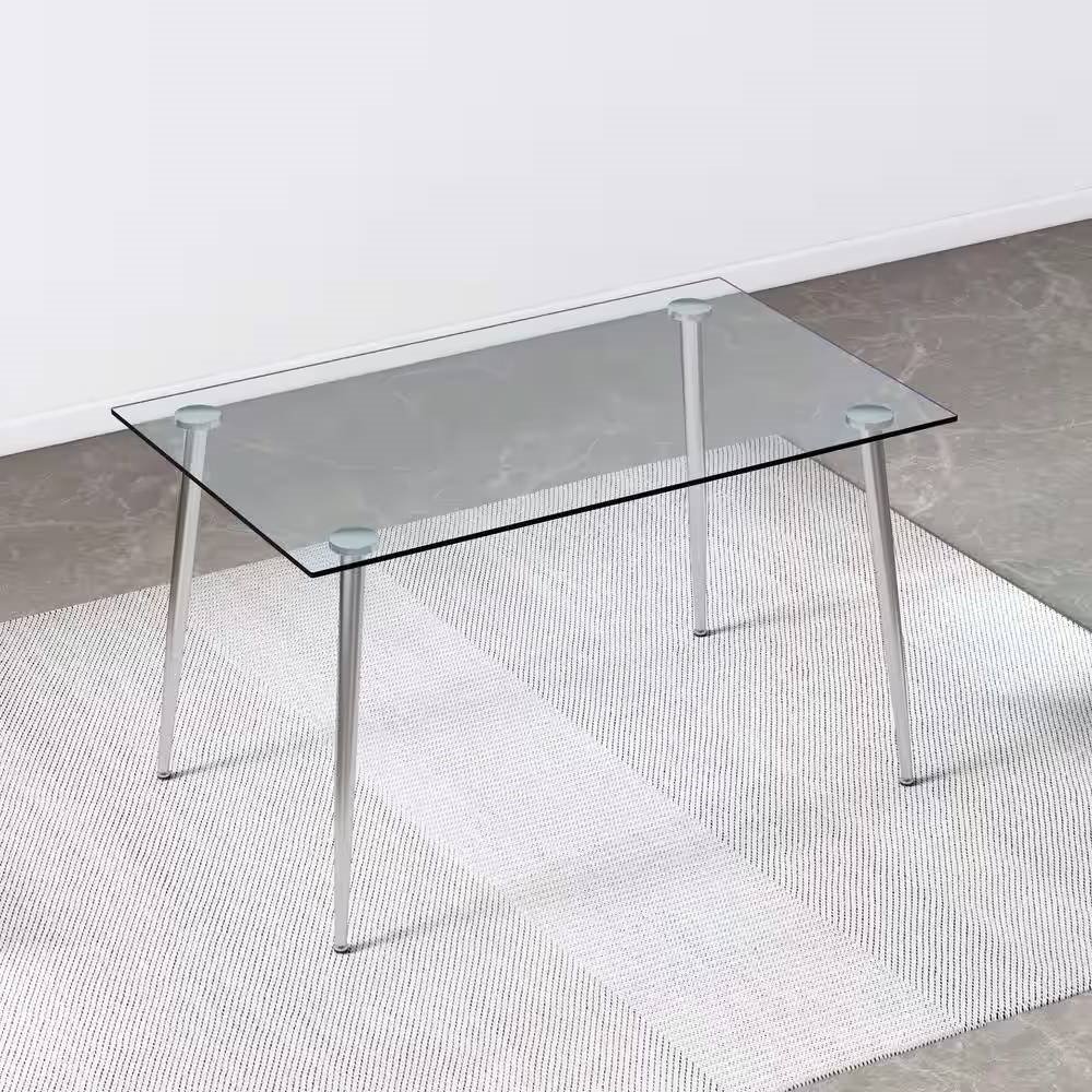 Elevate your dining space with our Modern 51-inch x 30-inch Glass Top Dining Table with Silver Metal Legs, featuring a minimalist design with a sleek 0.31" tempered glass tabletop and silver-plated metal legs, perfect for seating 4-6 people. Versatile and stylish, it's not just for dining but also serves as a functional writing table desk. With easy assembly and included tools, setting up this table is a breeze, providing a hassle-free experience for your home.