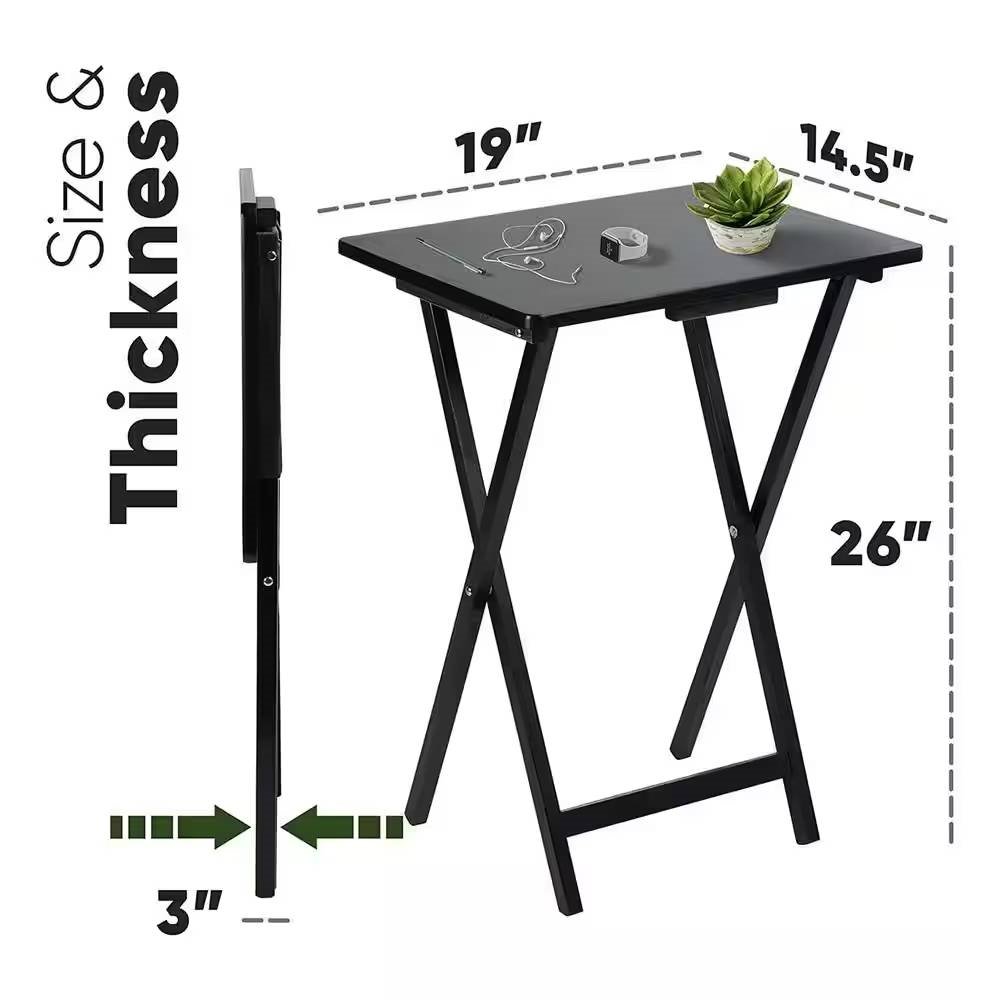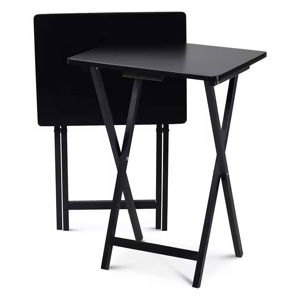 Set of 2 - Folding TV Tray Table Set in Black Wood Finish