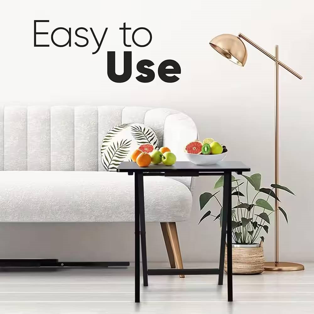 • Set of 2 - Folding TV Tray Table Set in Black Wood Finish