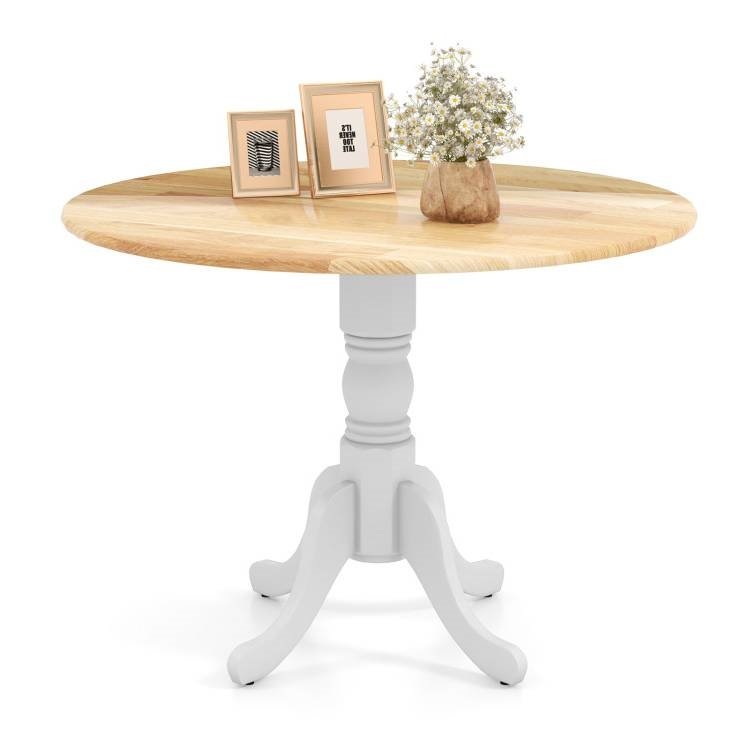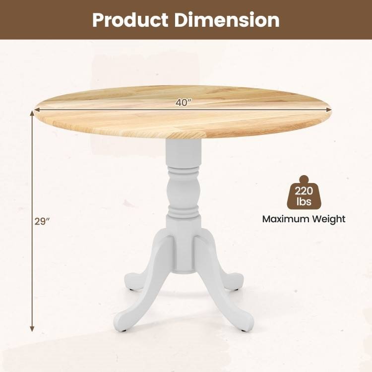 • Round 40-inch Solid Wood Kitchen Dining Table with White Legs and Natural Top