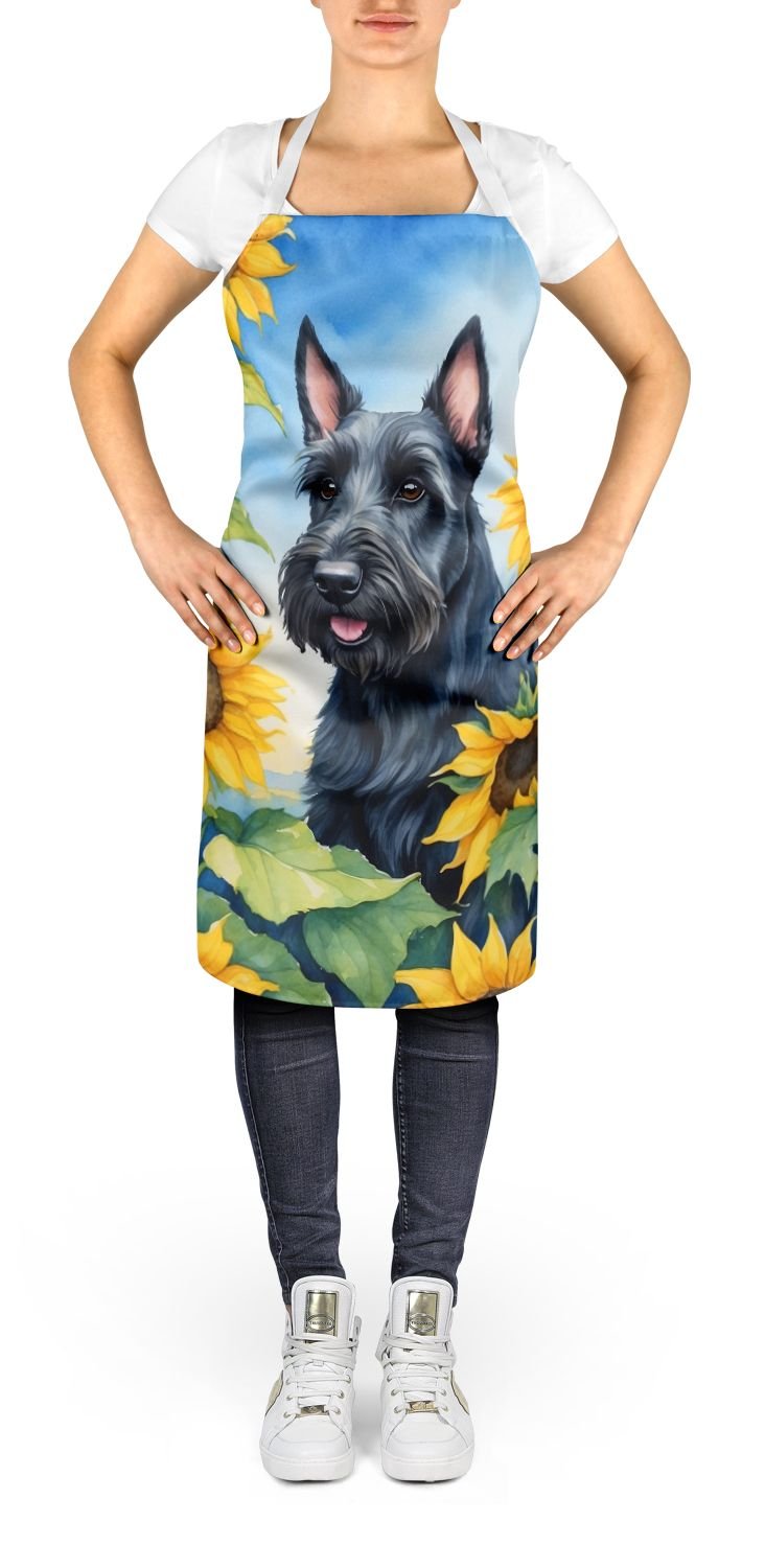 Home > Scottish Terrier in Sunflowers Apron Cooking Kitchen Server Baking Crafts Gardening for Adult Women Men, Unisex, Large, Multicolor
