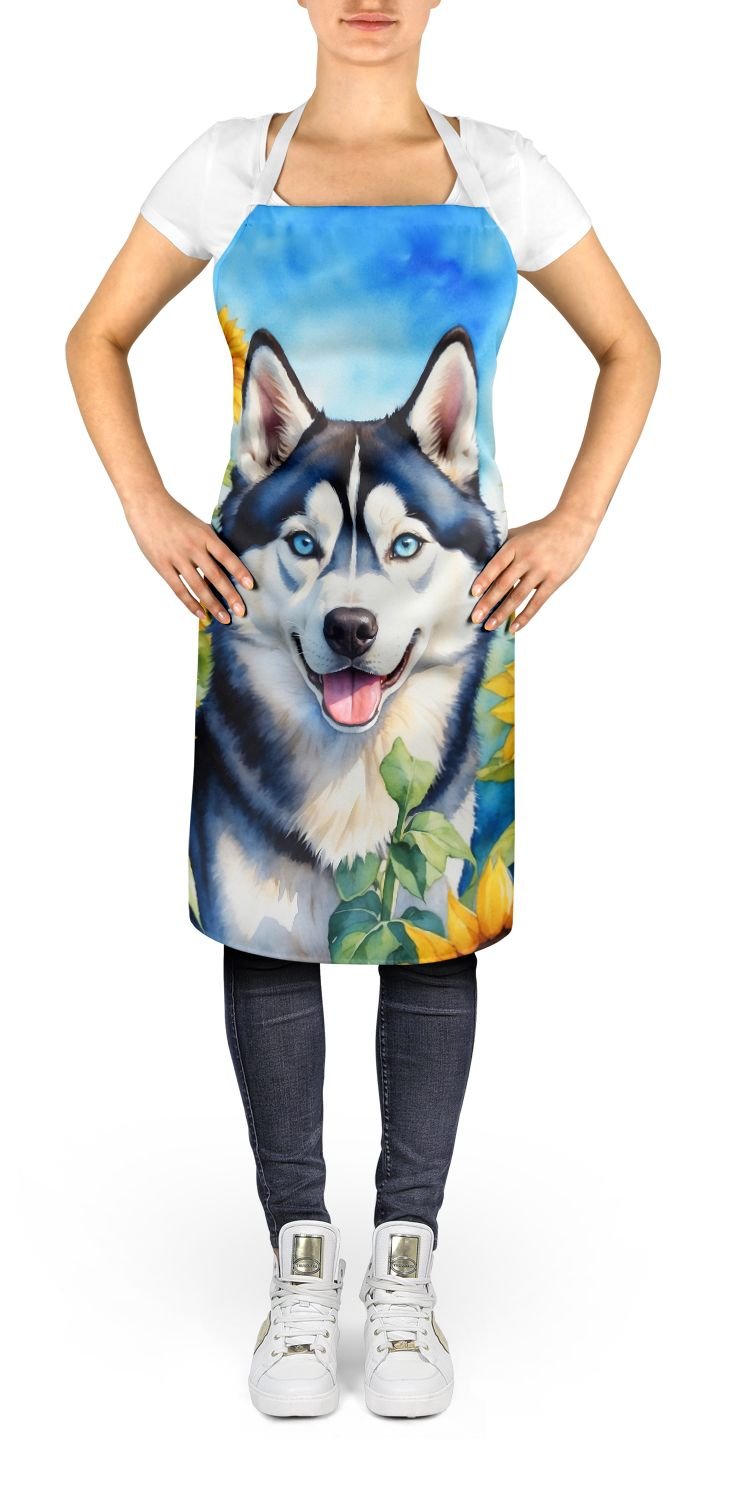 Siberian Husky in Sunflowers Apron Cooking Kitchen Server Baking Crafts Gardening for Adult Women Men, Unisex, Large, Multicolor