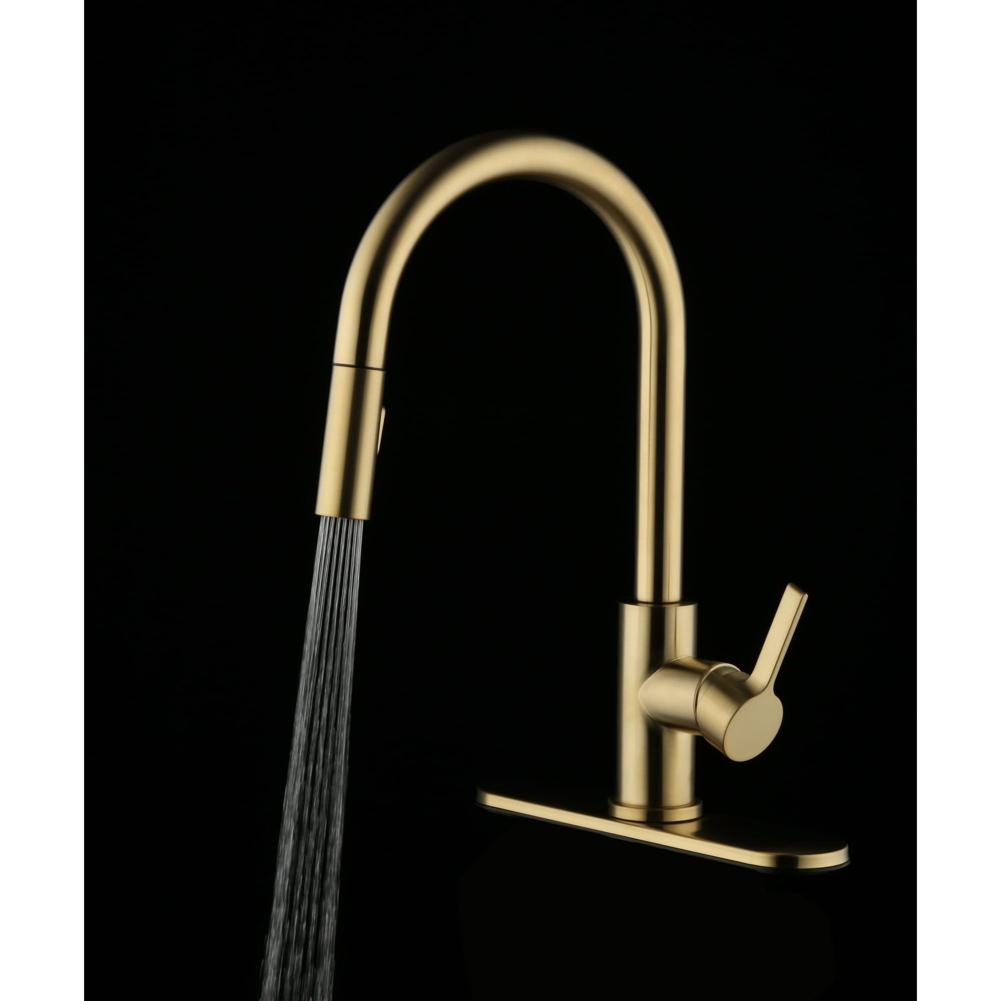 Single Handle Pull-Down Kitchen Faucet with Soap Dispenser, Brushed Brass