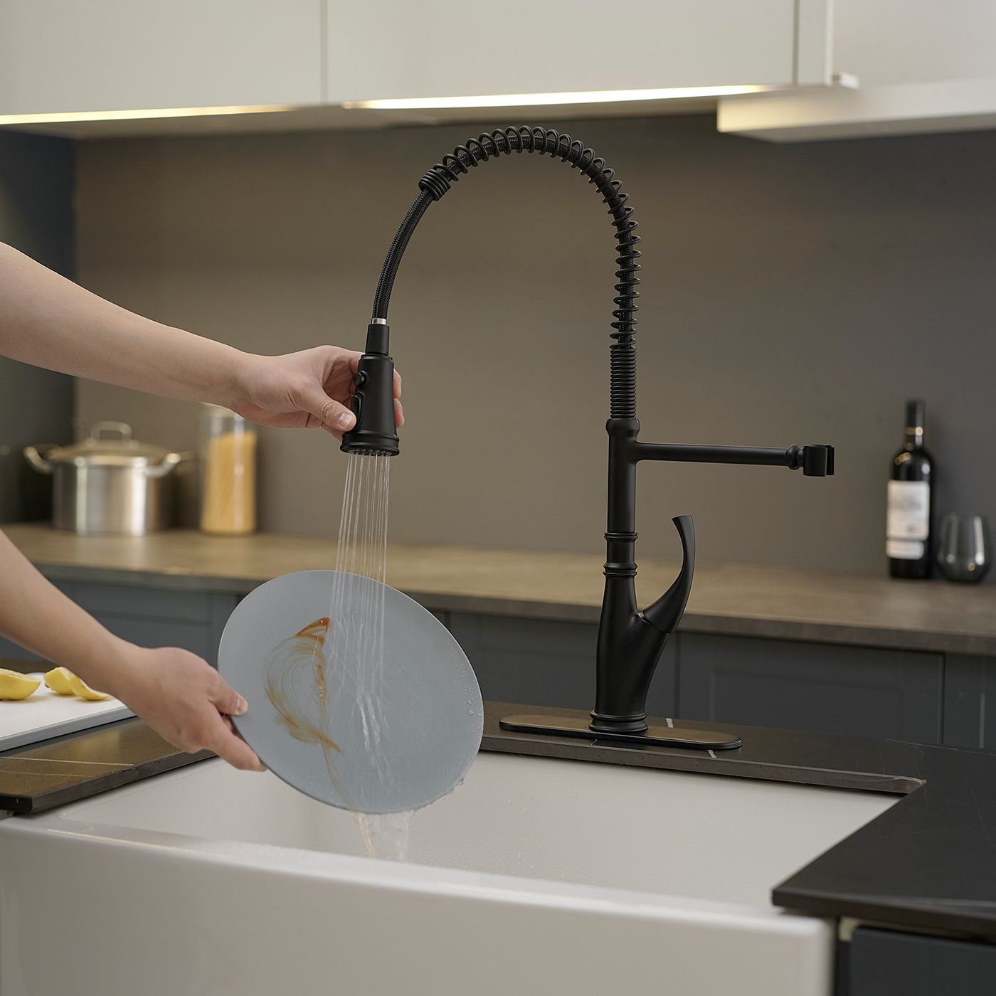 Home > Single-Handle Pull-Down Sprayer 3 Spray High Arc Kitchen Faucet With Deck Plate in Matte Black